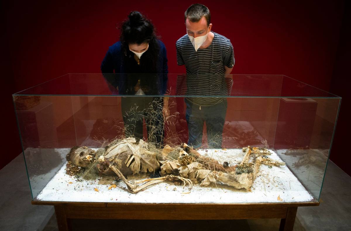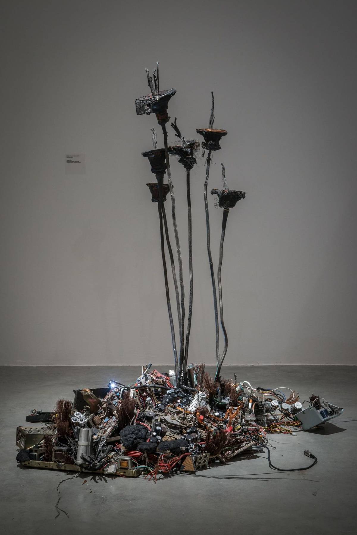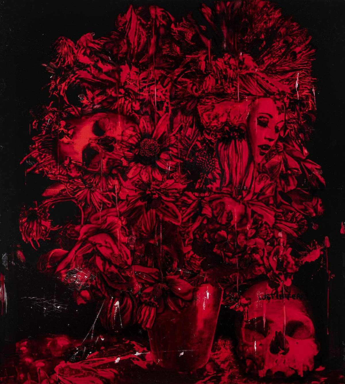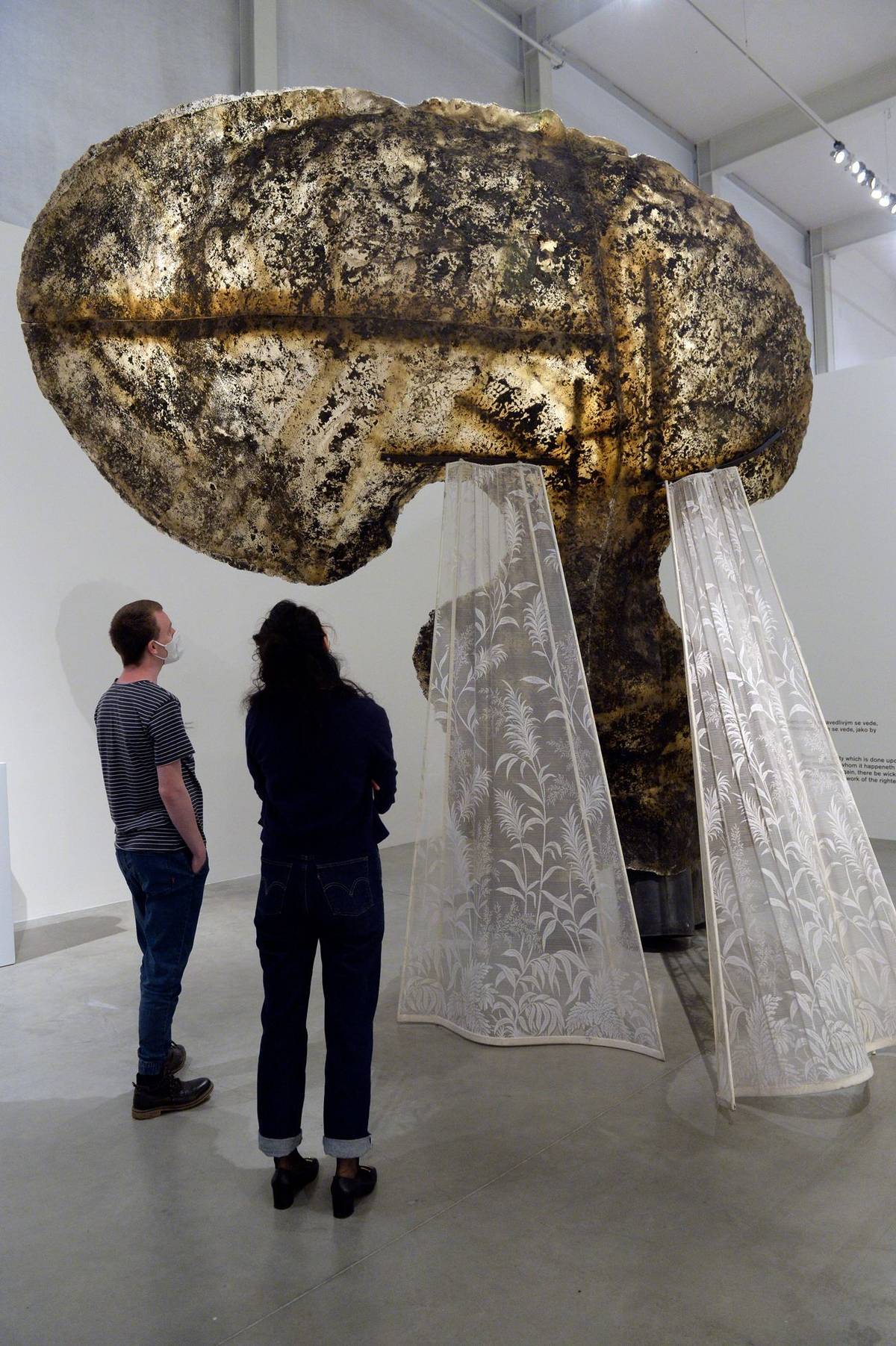 Na snímku z výstavy Vanitas v pražském Centru současného umění Dox je dílo Lebka od Davida Černého.