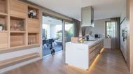 Interiér je postavený na běleném dubu – světlém kompaktním materiálu Fenix od firmy Arpa