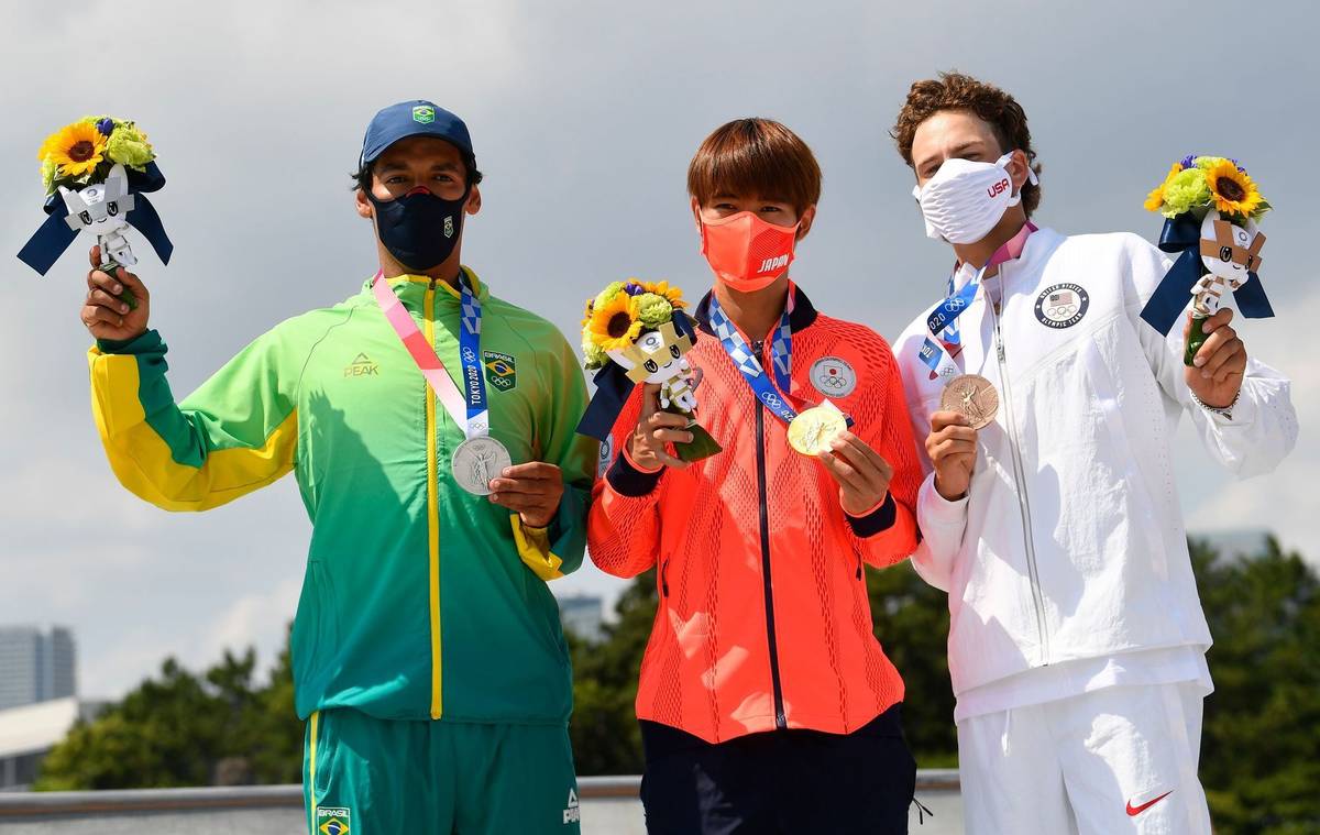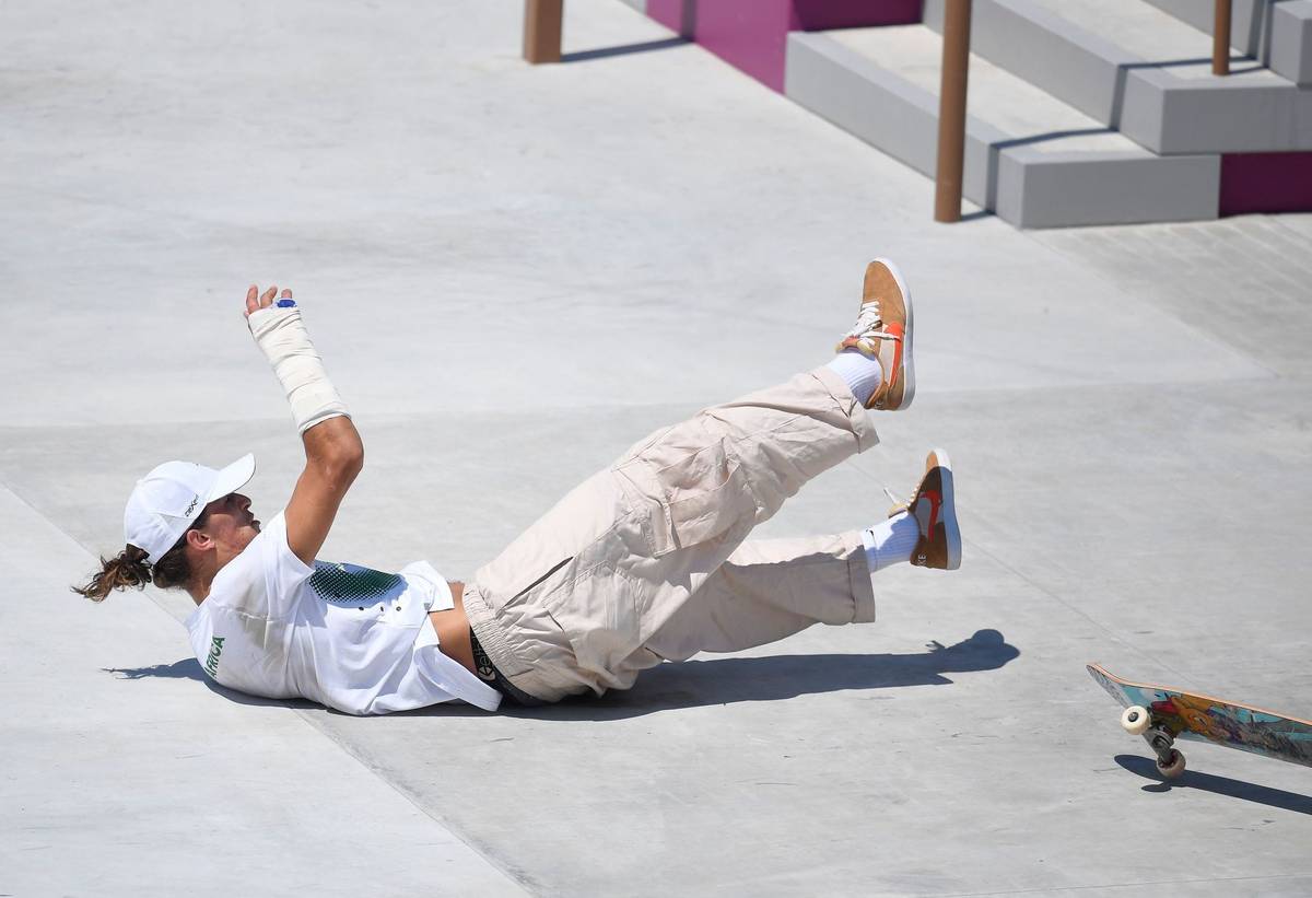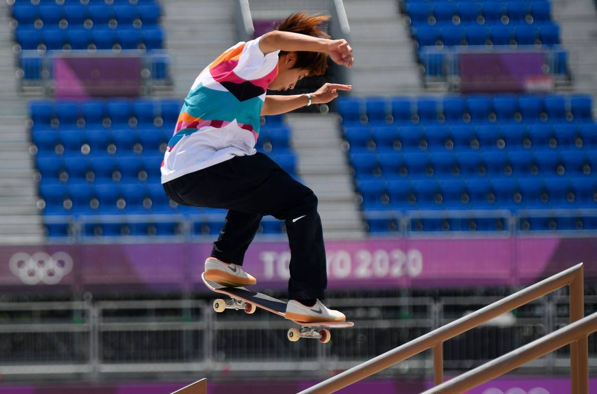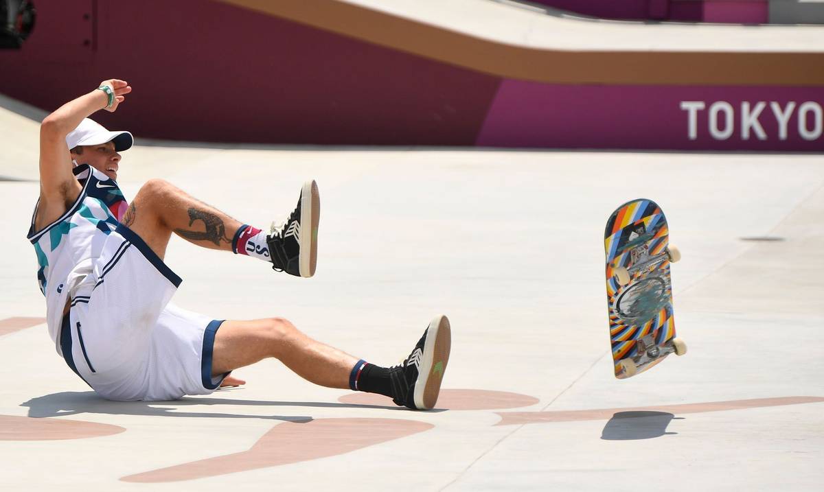 Také Yuto Horigome se ocitl na zemi, ale nemuselo mu to vadit. V časovém limitu předvedl ty nejlépe hodnocené triky a přinesl pořádající zemi první olympijskou medaili z tohoto sportu.