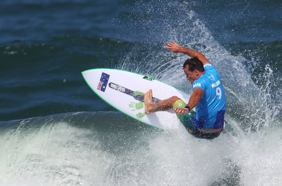 Tady zápasí s vlnami Julian Wilson z Austrálie.