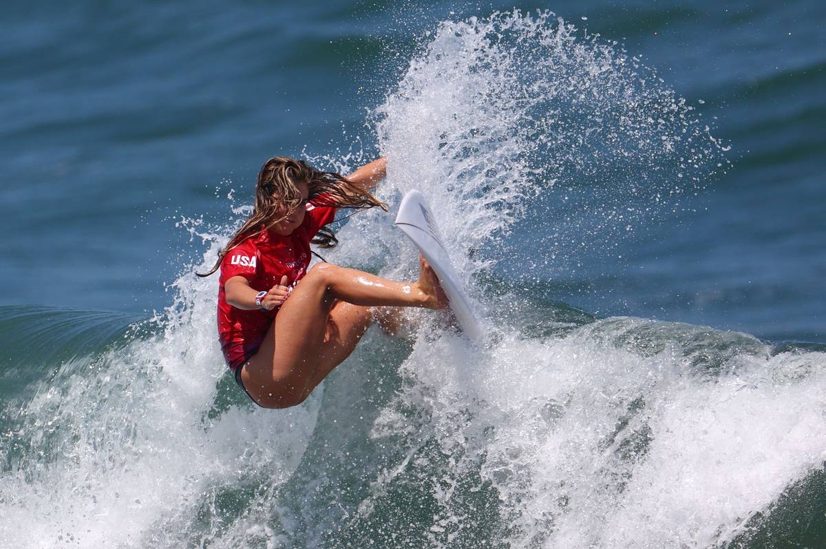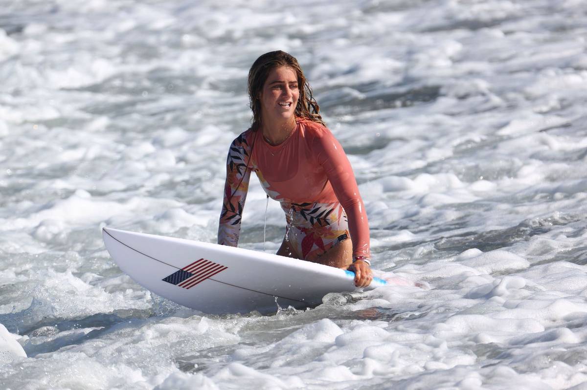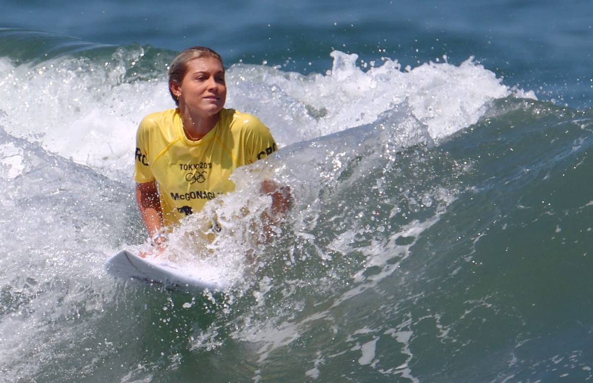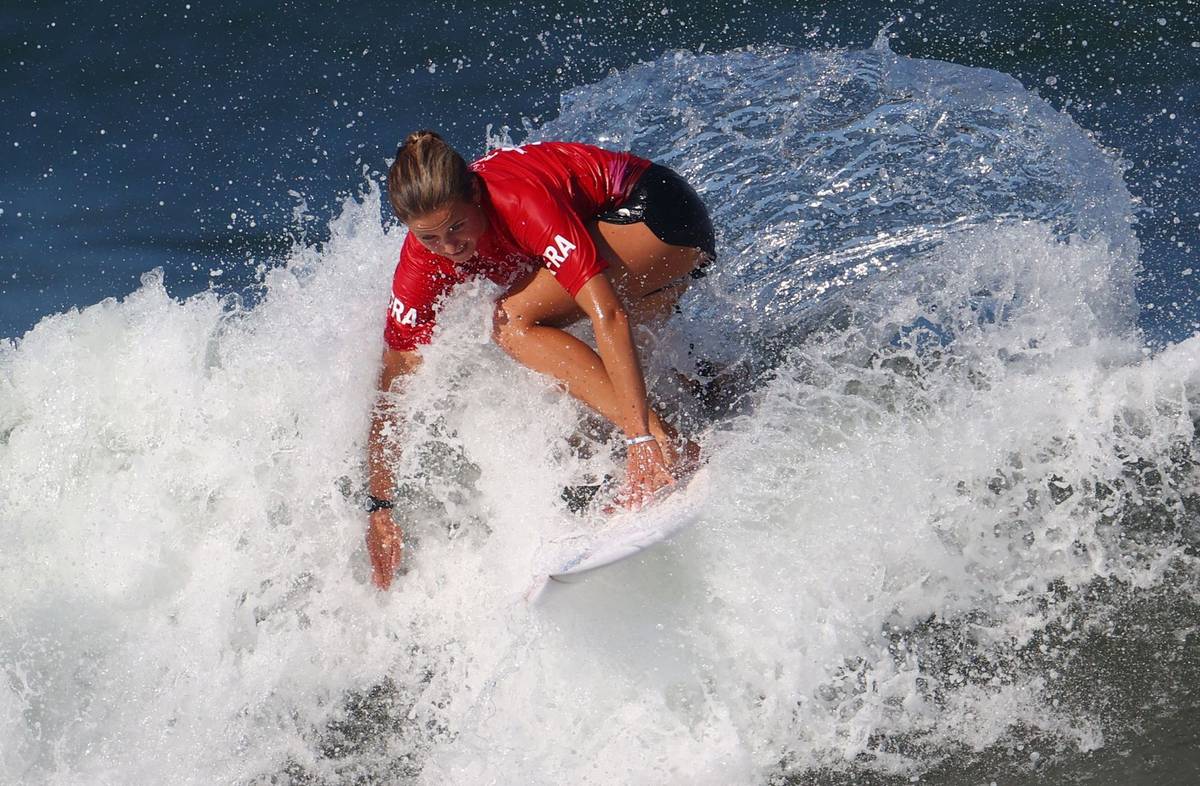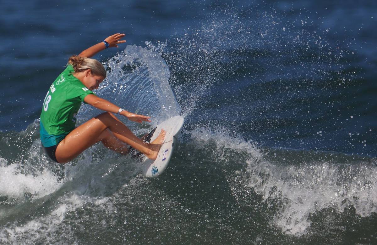 Leilani McGonagleová z Kostariky vyhlíží vhodnou vlnu. Právě o čekání na ten správný příliv, po kterém se mohou reprezentantky svézt, je celý závod.