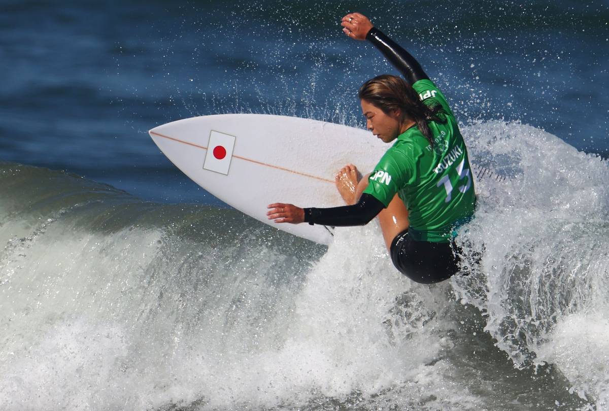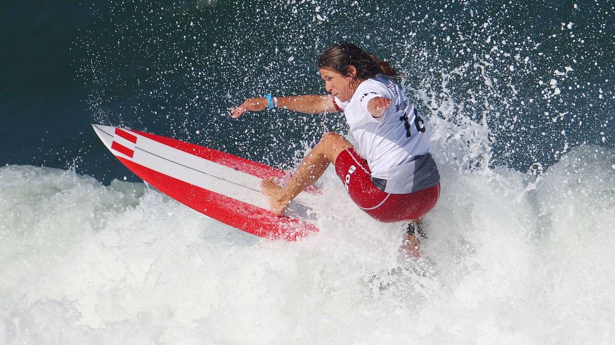 V neděli začalo na olympijských hrách v Tokio představování nových sportů, které prožívají pod pěti kruhy premiéru. Anat Leliorová z Izraele právě běží s prknem do vln.
