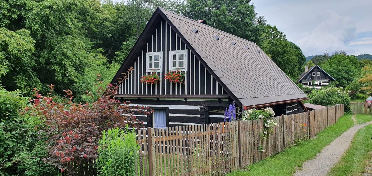Chaty mohou mít různou podobu, vždy však plní svůj hlavní účel – poskytnutí zázemí svým majitelům. Další příklad lidové tvořivosti z okolí Orlické přehrady.