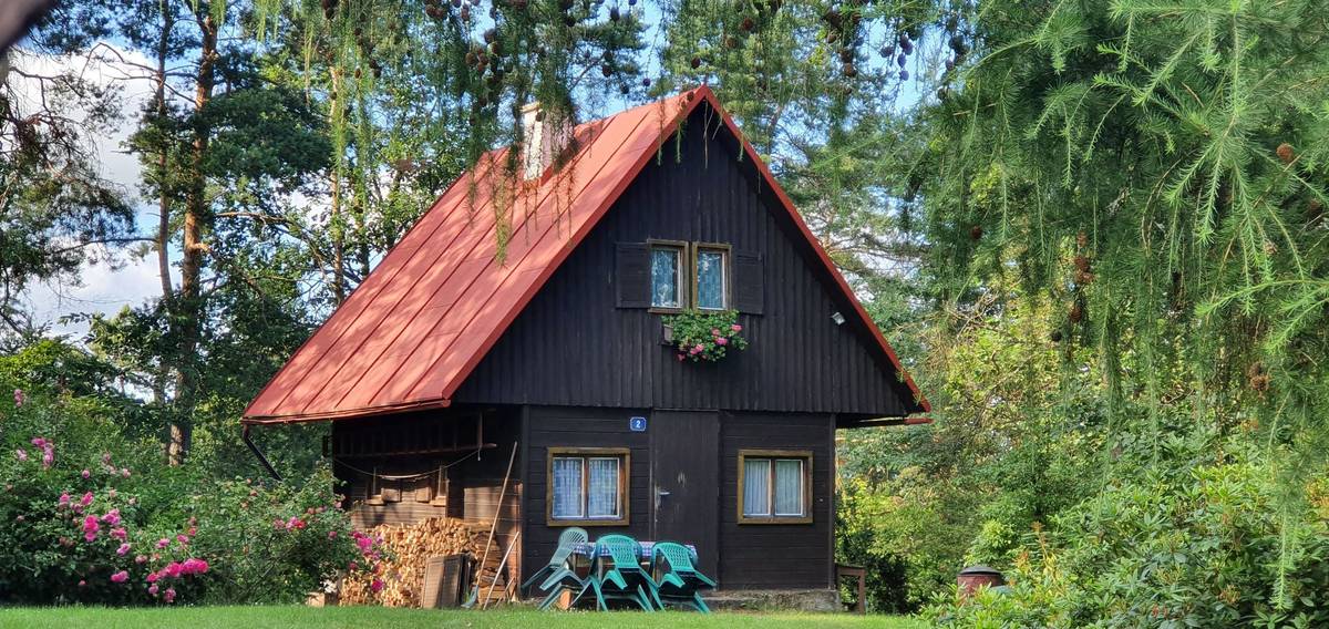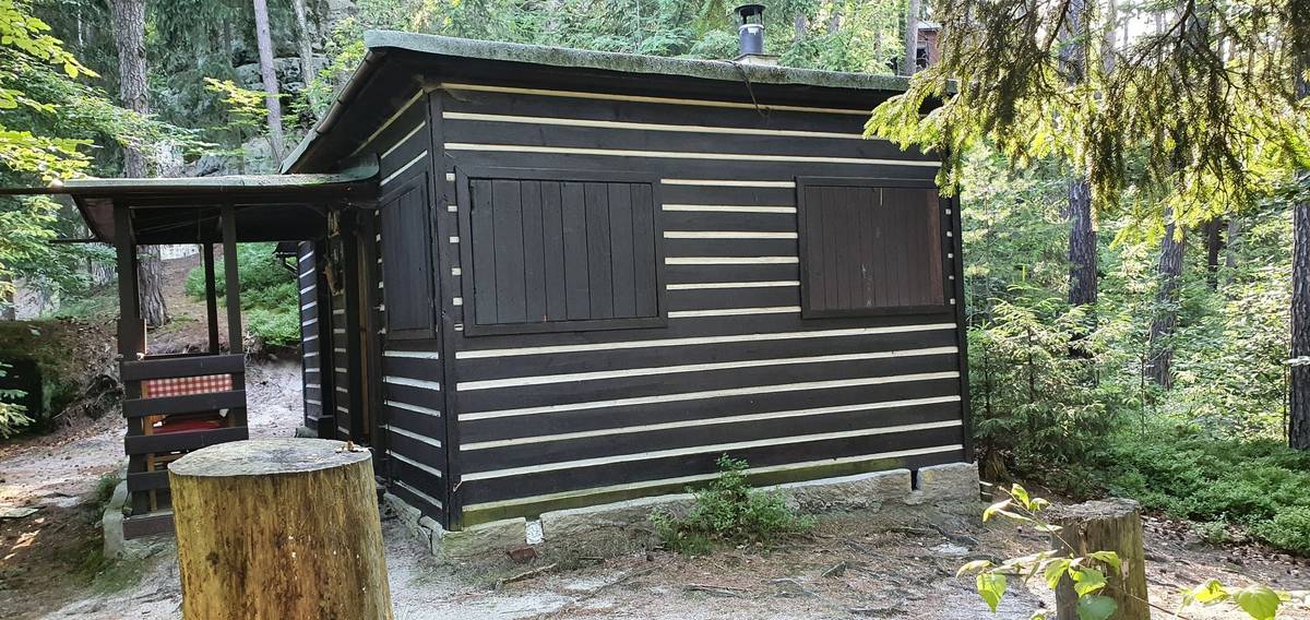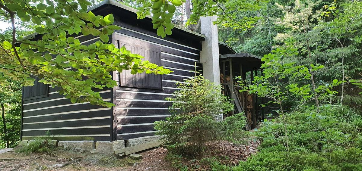 Centrální část této chaty tvoří maringotka, ke které postupně přibyla předsíň i venkovní terasa. Znovu se pohybujeme v okolí Orlické přehrady.