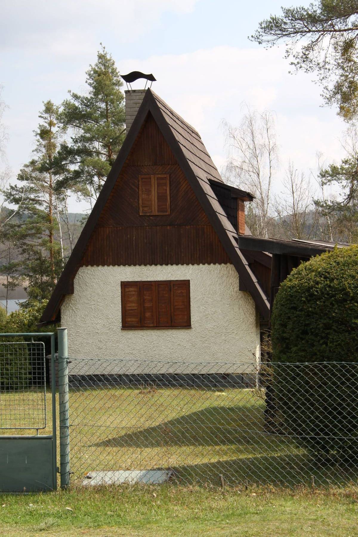 V 80. letech minulého století byla výstavba chat významně regulována. Parcely mohly mít maximálně 400 čtverečních metrů, chaty 50, v zahrádkových koloniích pak dokonce 16 či později 25 metrů čtverečních. Co nemohlo jít do šířky, šlo proto do výšky. Tato stojí nedaleko Orlické přehrady.
