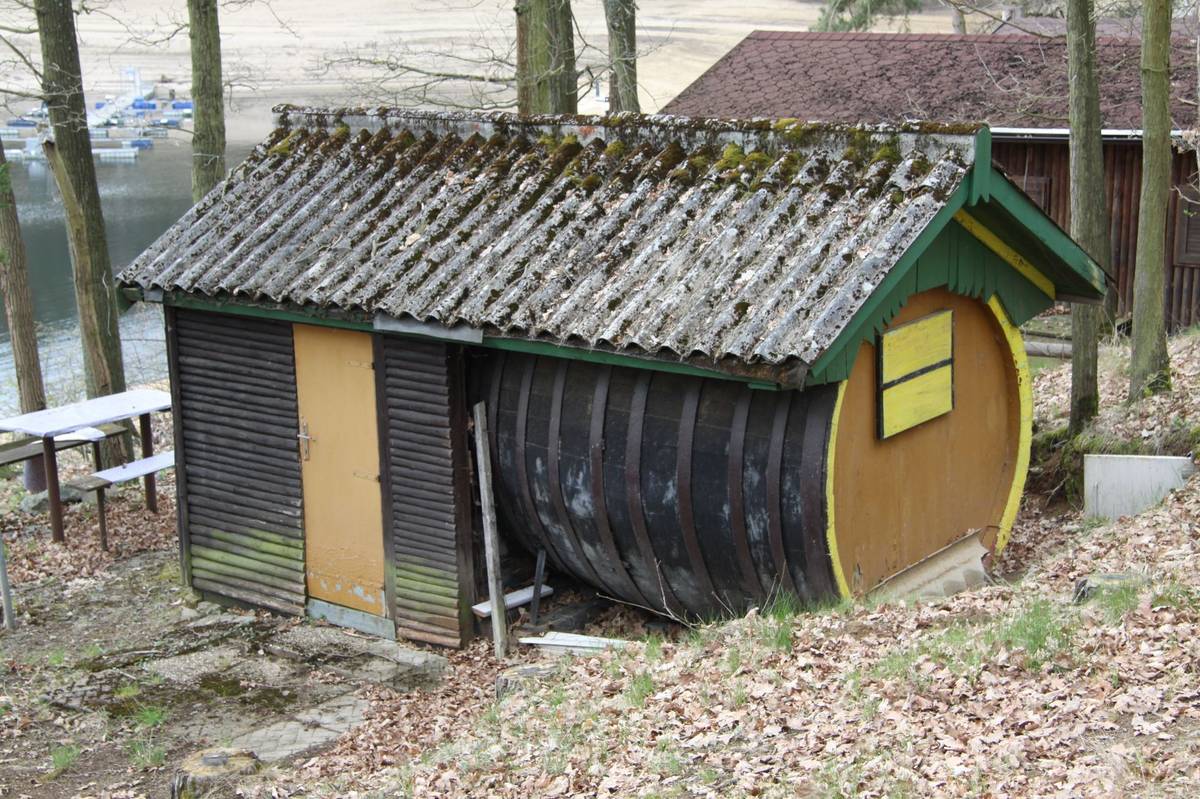 Břehy přehradních nádrží lemují rekreační chaty stavěné především v 70. letech minulého století. Nejčastěji se jedná o montovanou dřevostavbu s podsklepením, které poskytuje prostor pro úkryt nezbytného zahradního i dalšího hobby náčiní. Tato chatka je v osadě nad zatopenou obcí Těchnice, kterou pohltila Orlická přehrada.
