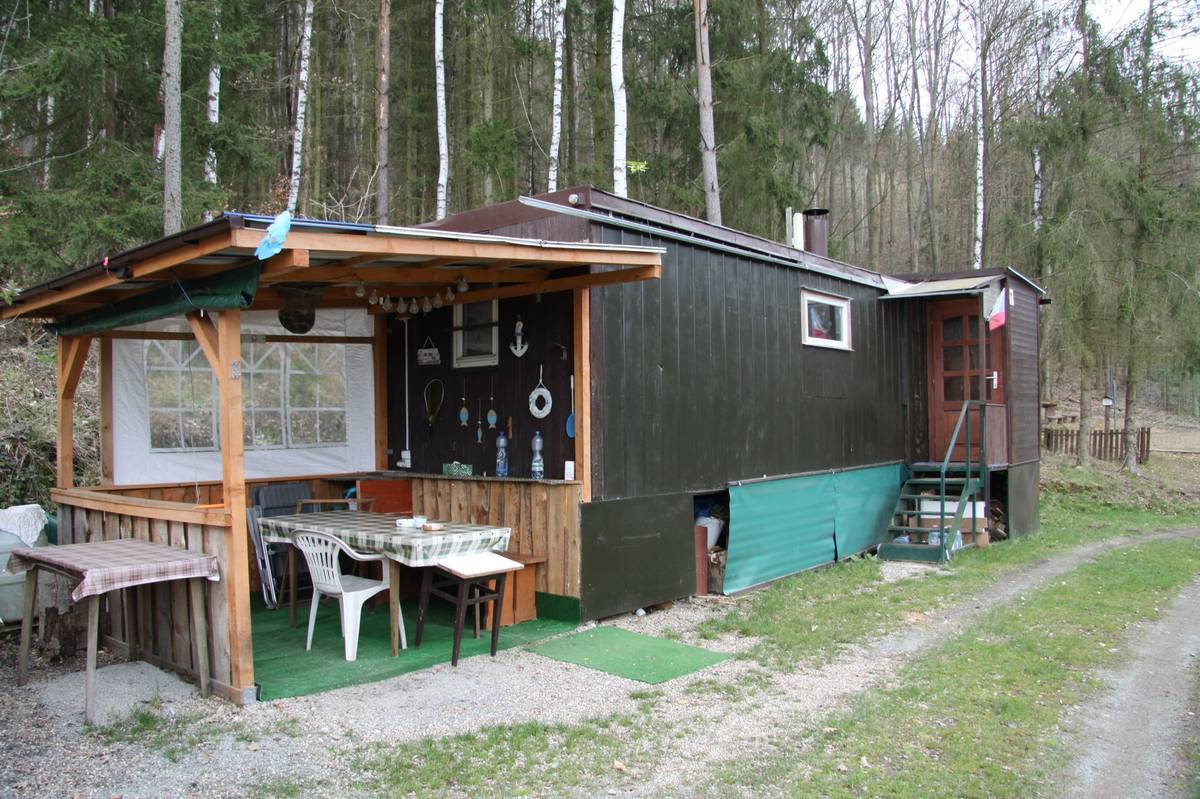 Jako rekreační objekty často slouží i vysloužilé karavany, které jsou natrvalo zaparkovány v kempech, jejichž sociální zařízení chataři využívají. Opět příklad z okolí Orlické přehrady.