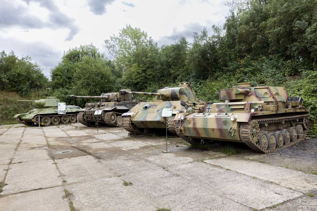 ...tanky a filmová maketa letounu Curtis P-40.
