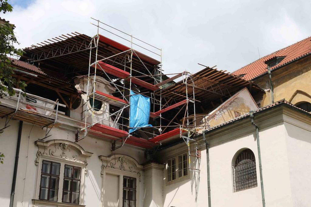 Pro hladší průběh rekonstrukce byla z lešení postavena tzv. střecha nad střechou.