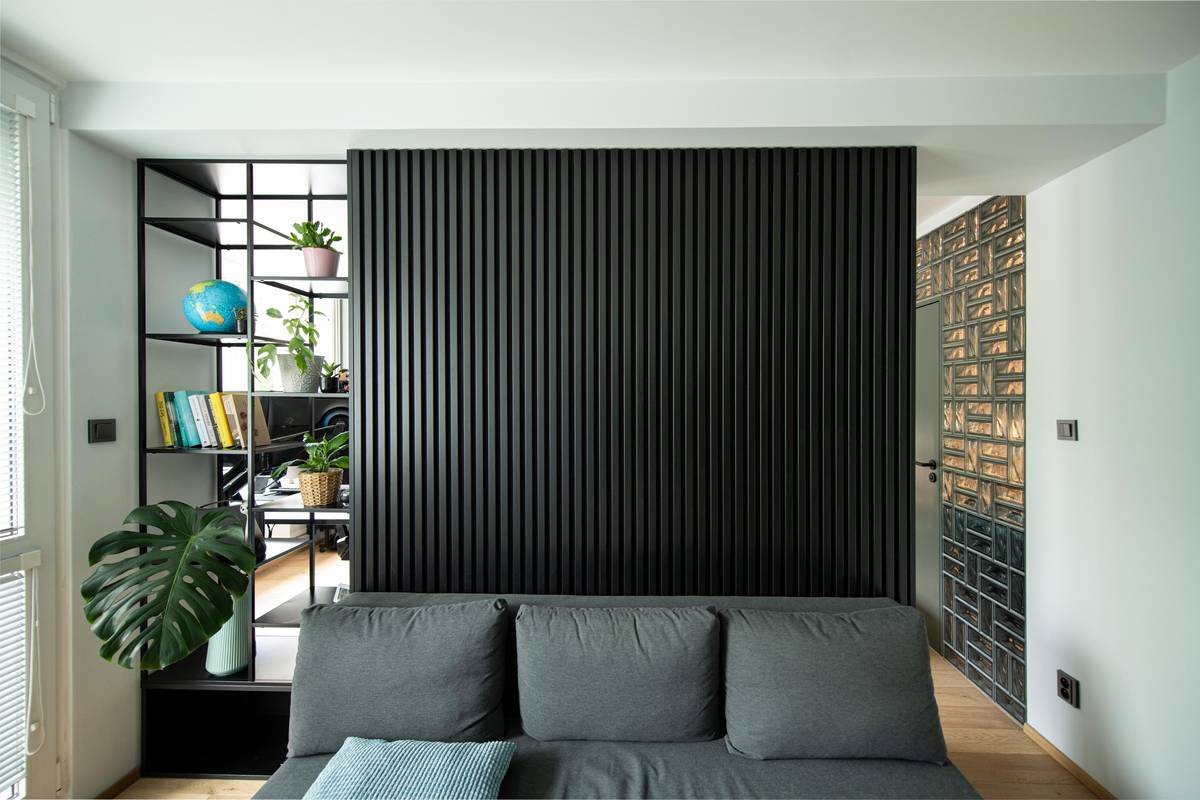 Prosklená příčka je praktickým prvkem, který odděluje dvě části bytu, a přitom propouští světlo dále do hloubi interiéru.