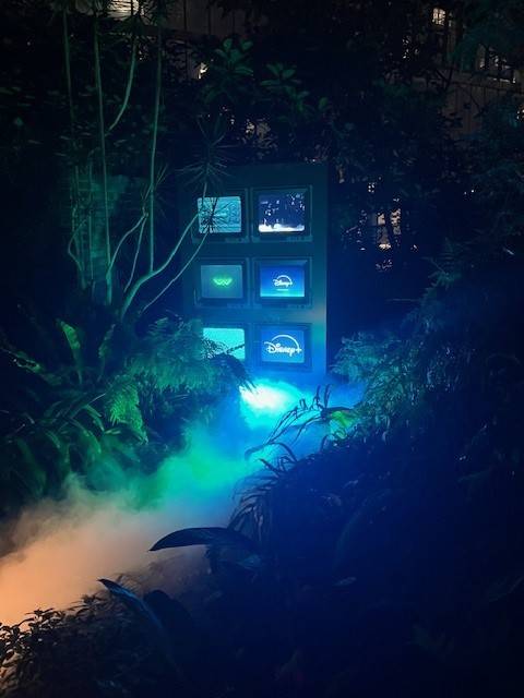 Režisér, scenárista Noah Hawley vítá publikum, vesměs novináře a influencery. Za ním stojí rekvizity s „vetřelci“.