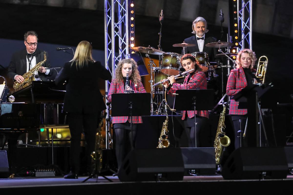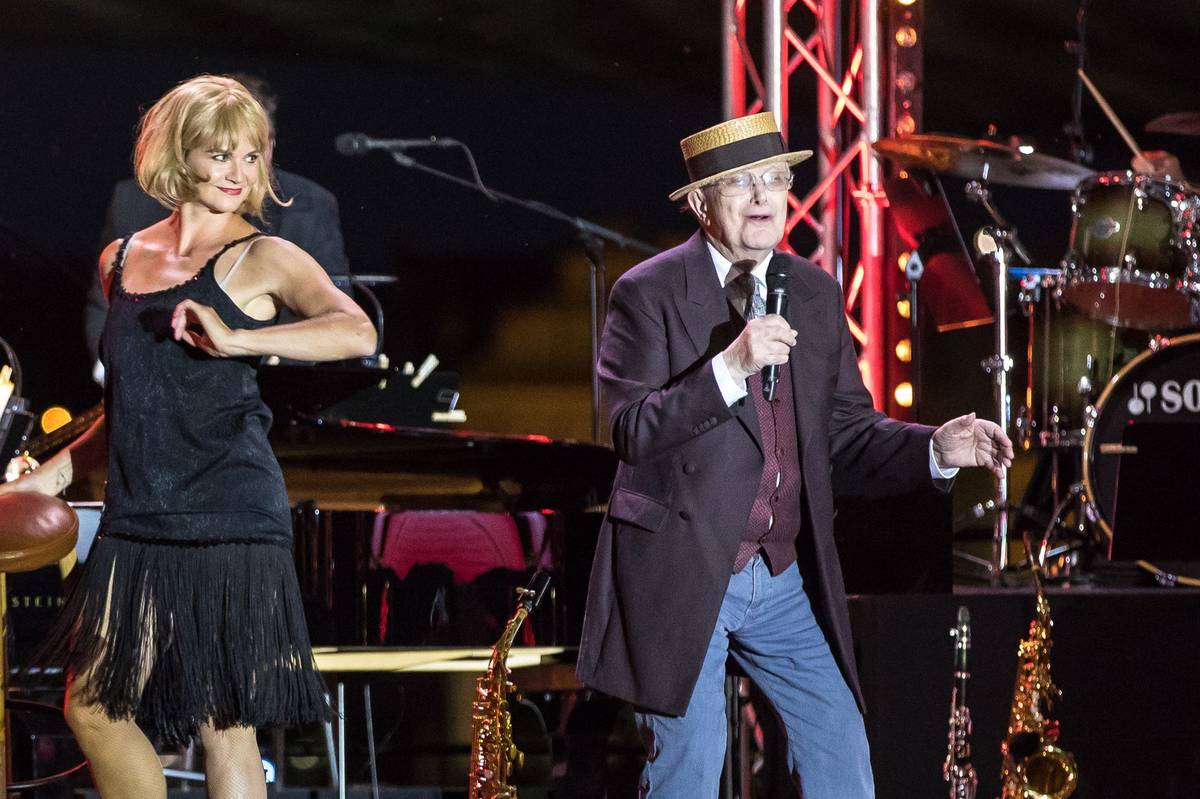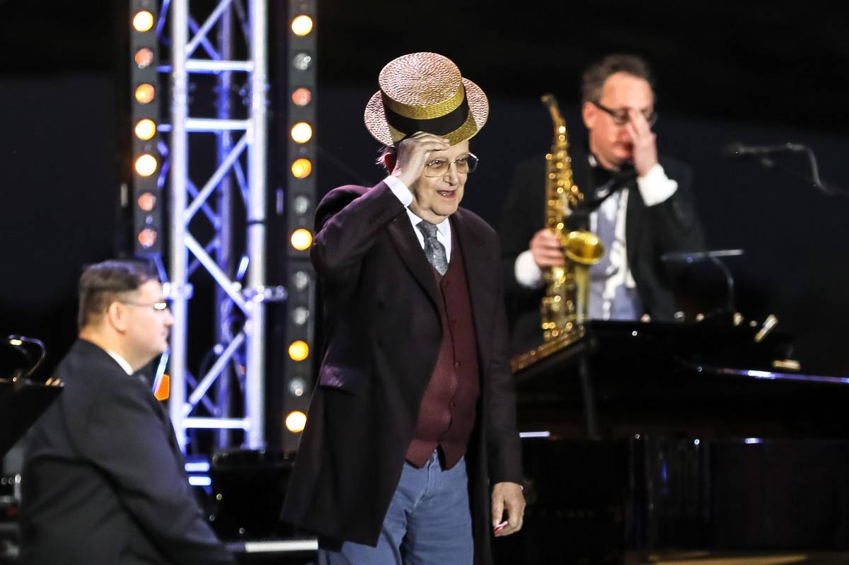 Suchého (na snímku) doprovodil orchestr jeho divadla Semafor. Večer zahájil upravenou Vltavou od Bedřicha Smetany.