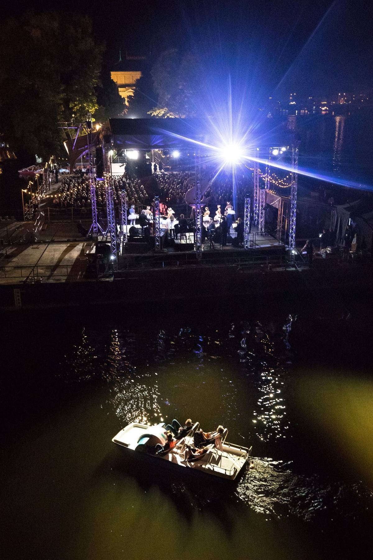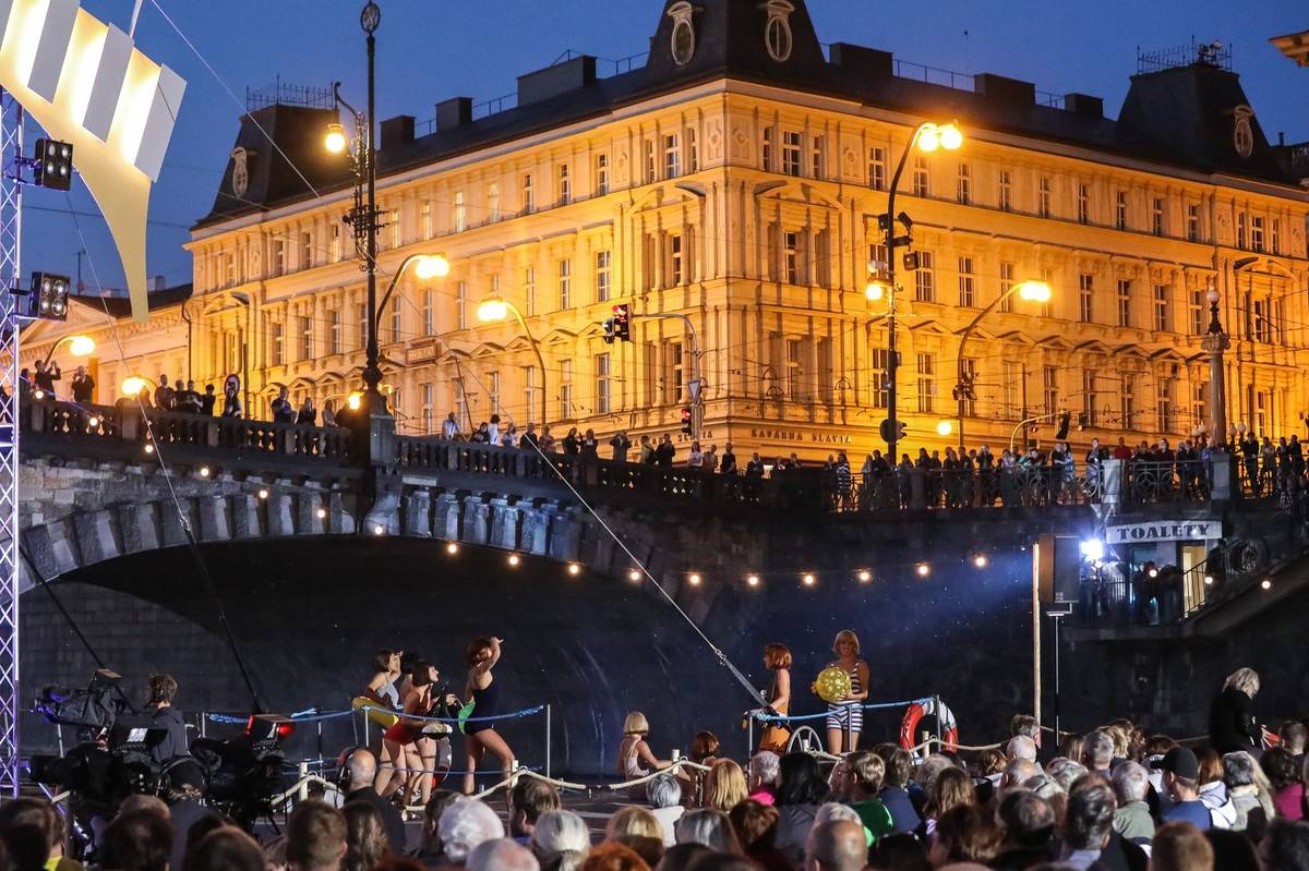 Vystoupení nazvané Árie měsíce sledovalo v hledišti zhruba 900 lidí, další stáli na mostu Legií a vltavských nábřežích, nebo si pronajali lodičky a šlapadla.