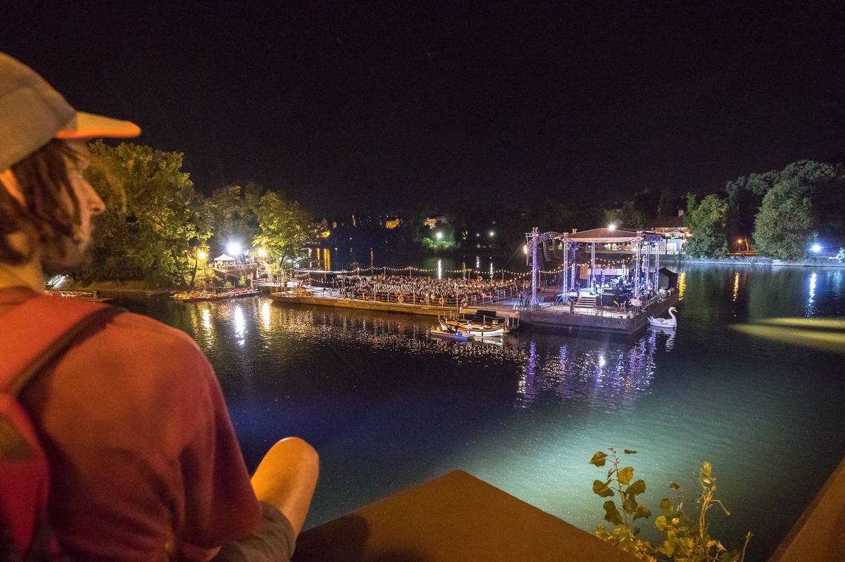 Plovoucí scénu na Vltavě postavily Struny podzimu poprvé vloni u příležitosti koncertu houslisty Daniela Hopea.