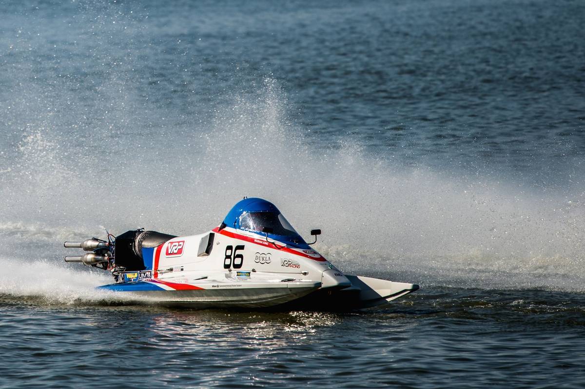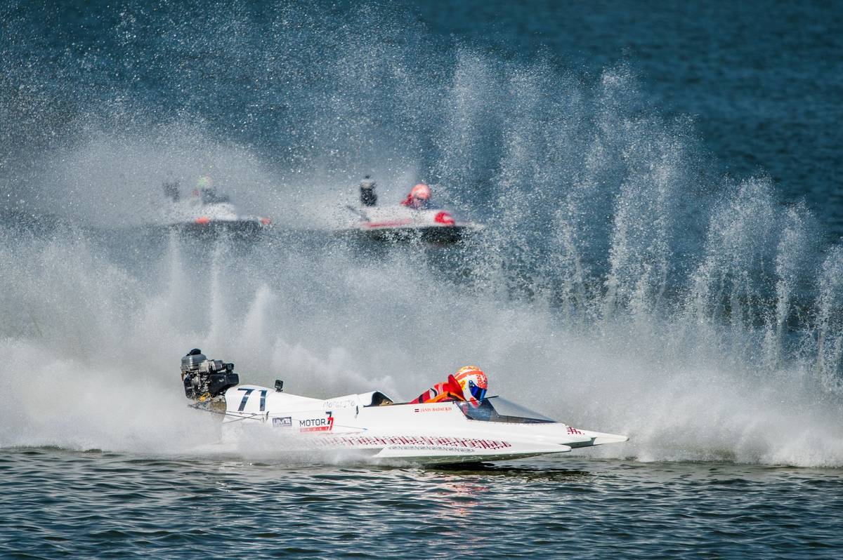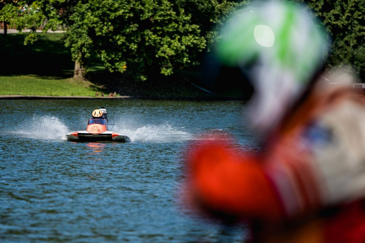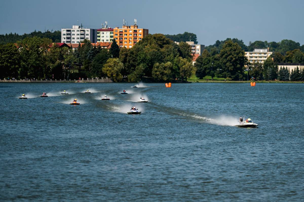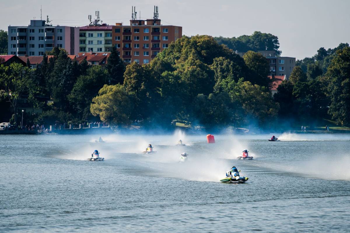 Od člunů létají obří gejzíry vody, které činí situaci kolem závodníka značně nepřehlednou. Tady se ale ještě titul mistra světa nerozdával, třídu F500 průběžně vede Estonec Erko Aabrams.
