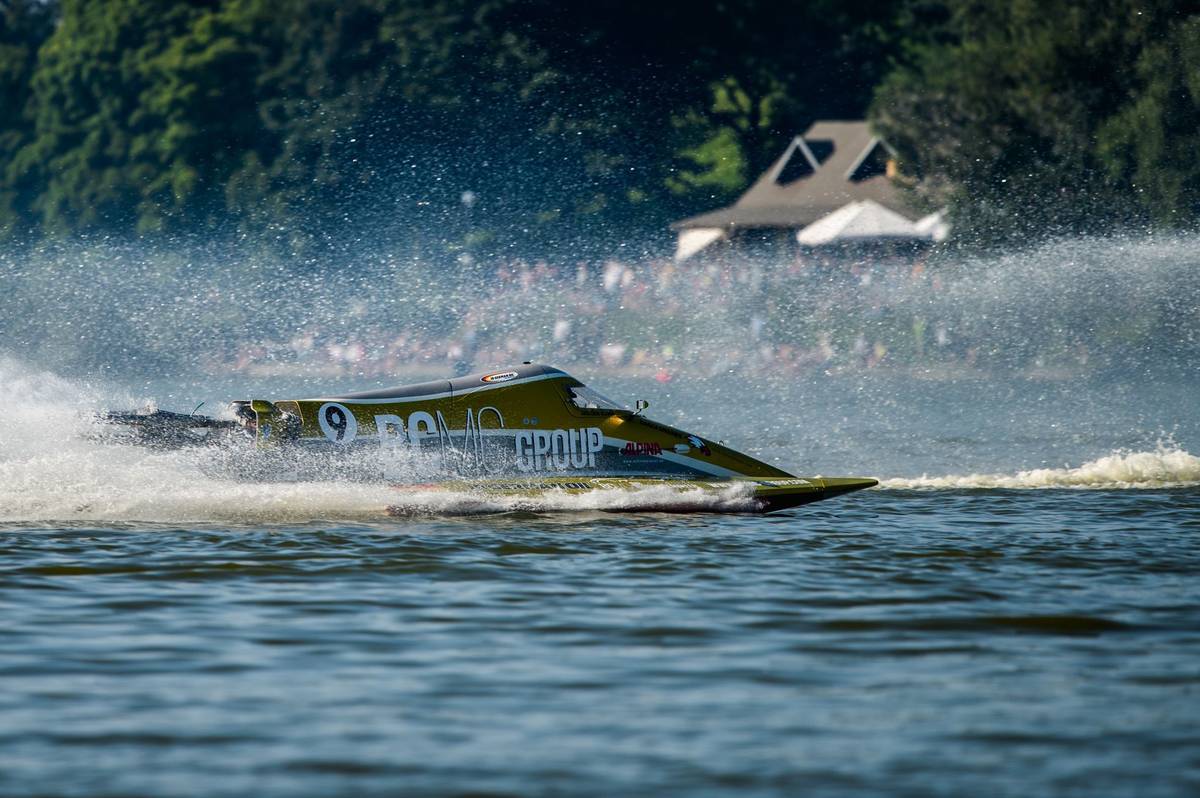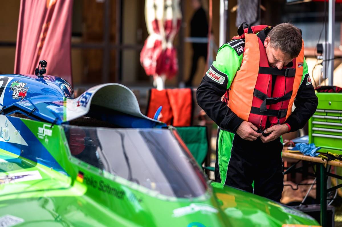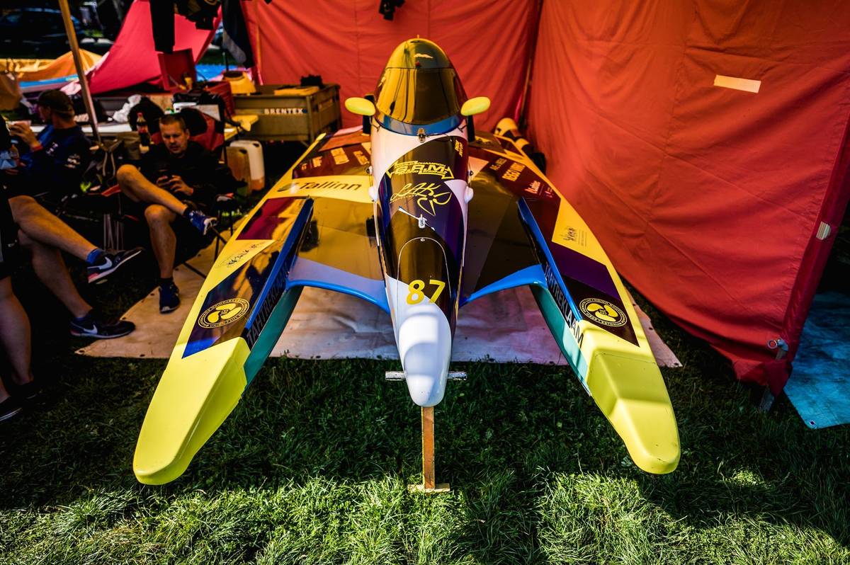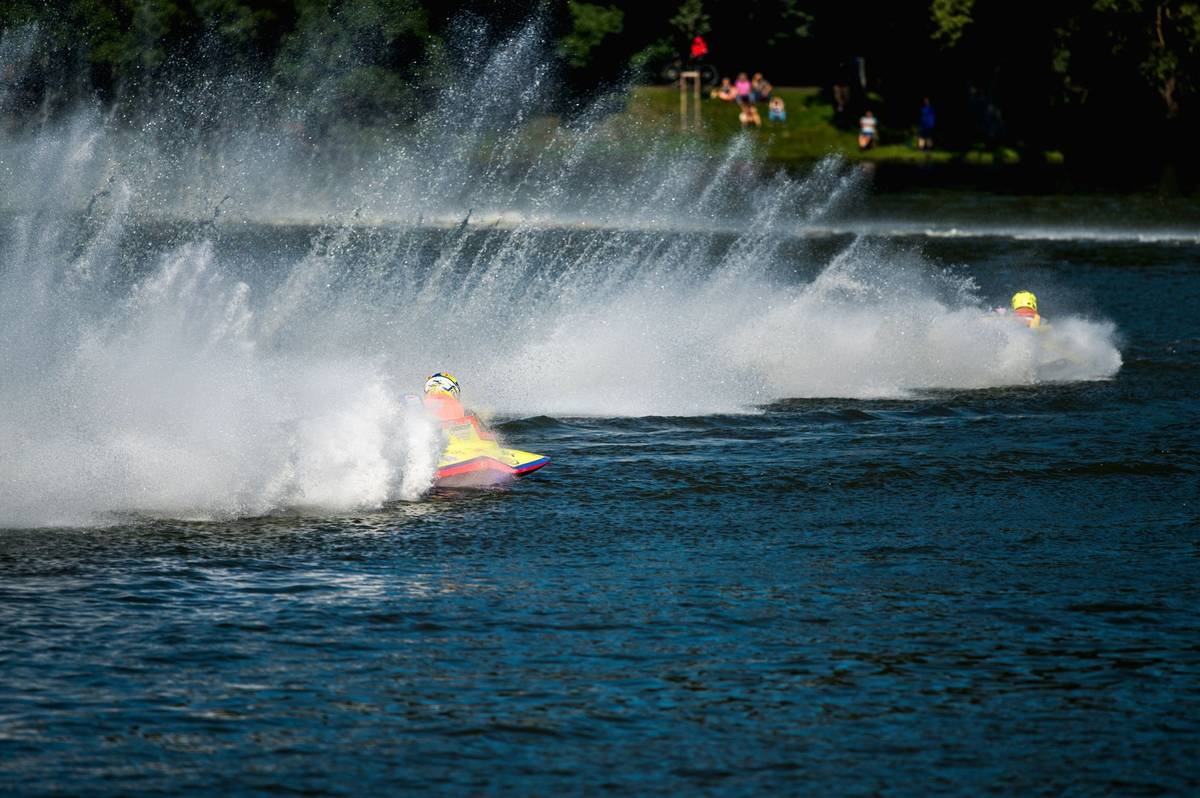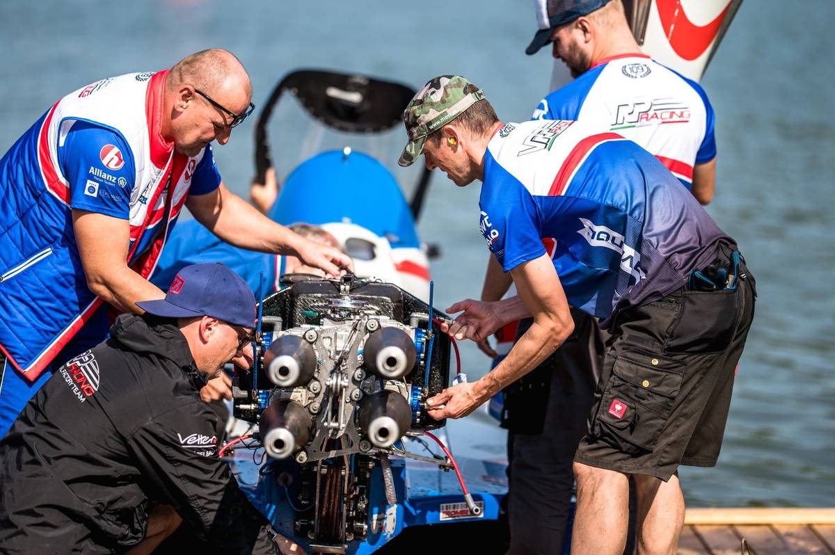 Od člunů létají obří gejzíry vody, které činí situaci kolem závodníka značně nepřehlednou. Tady se ale ještě titul mistra světa nerozdával, třídu F500 průběžně vede Estonec Erko Aabrams.