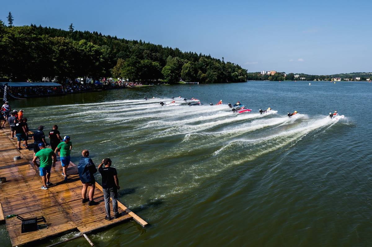 Start jednoho ze závodů motorových člunů v Jedovnicích 2021