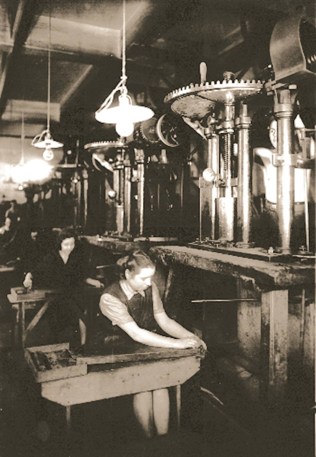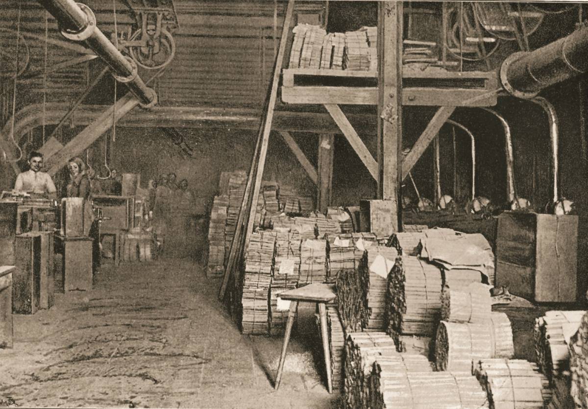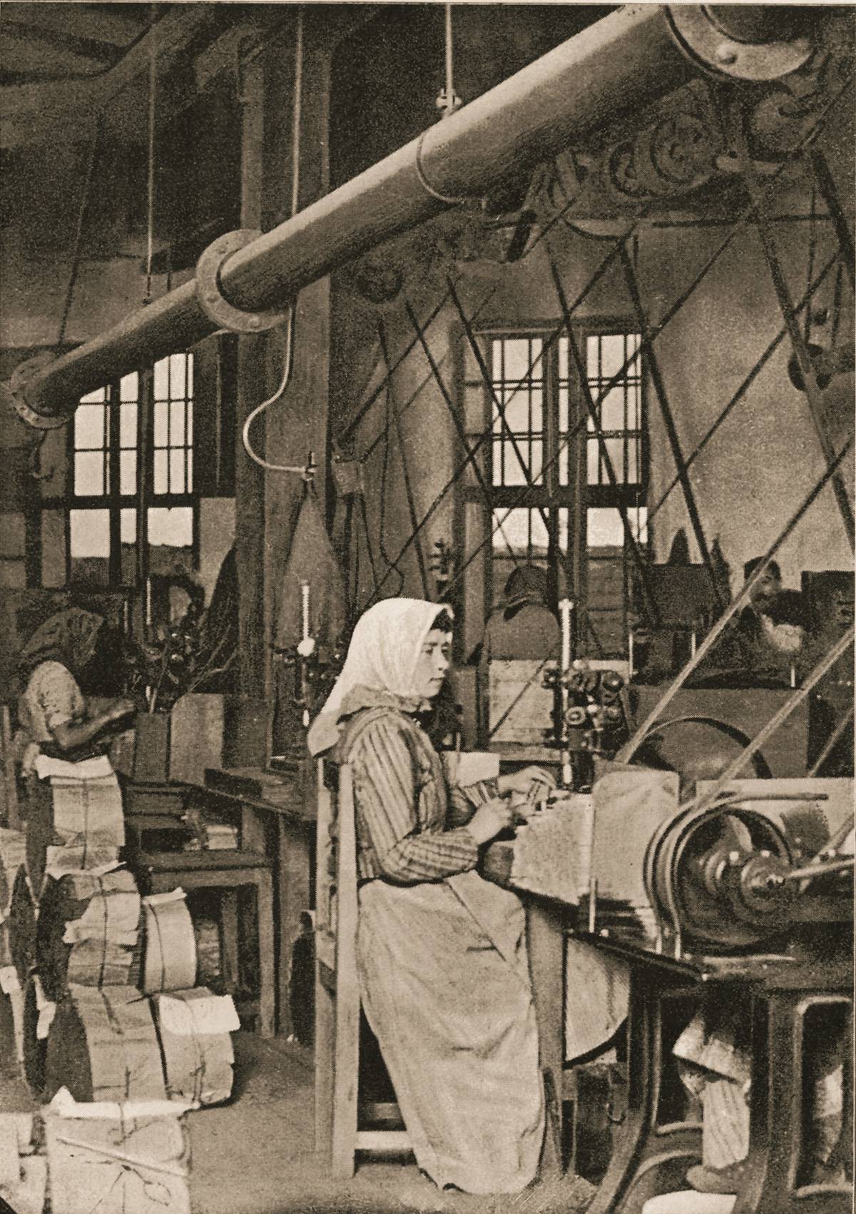 Koh-i-noor Hardtmuth, tužky. Továrna Koh-i-noor (přelom 19. a 20. století). Manufakturní výroba výrazně zefektivnila proces vzniku tužky.