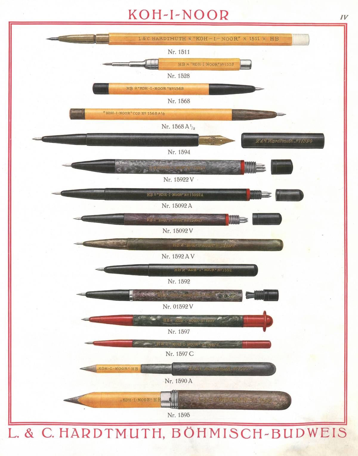 Koh-i-noor Hardtmuth, Ukázky ze sortimentu výrobků kolem roku 1900.