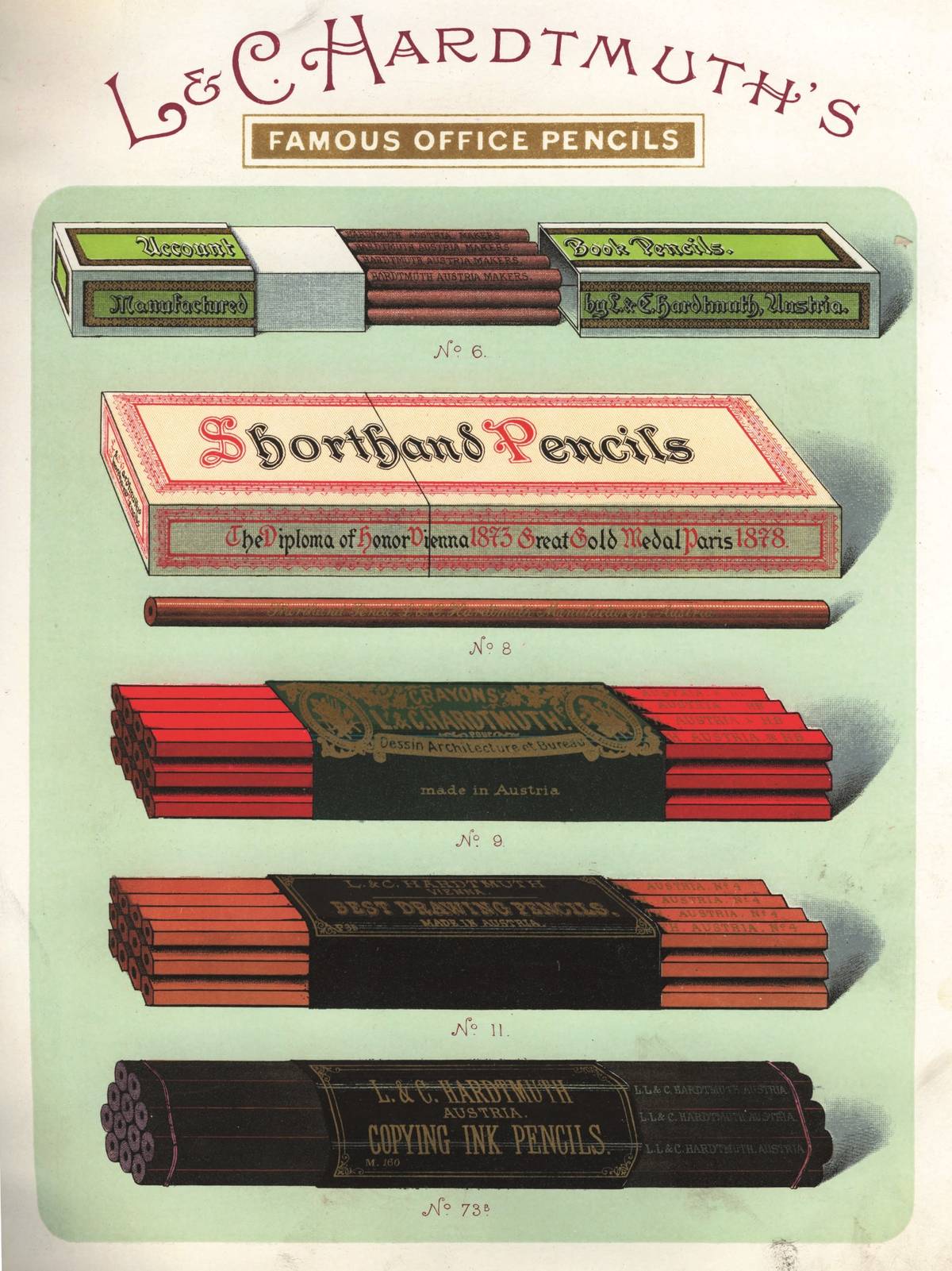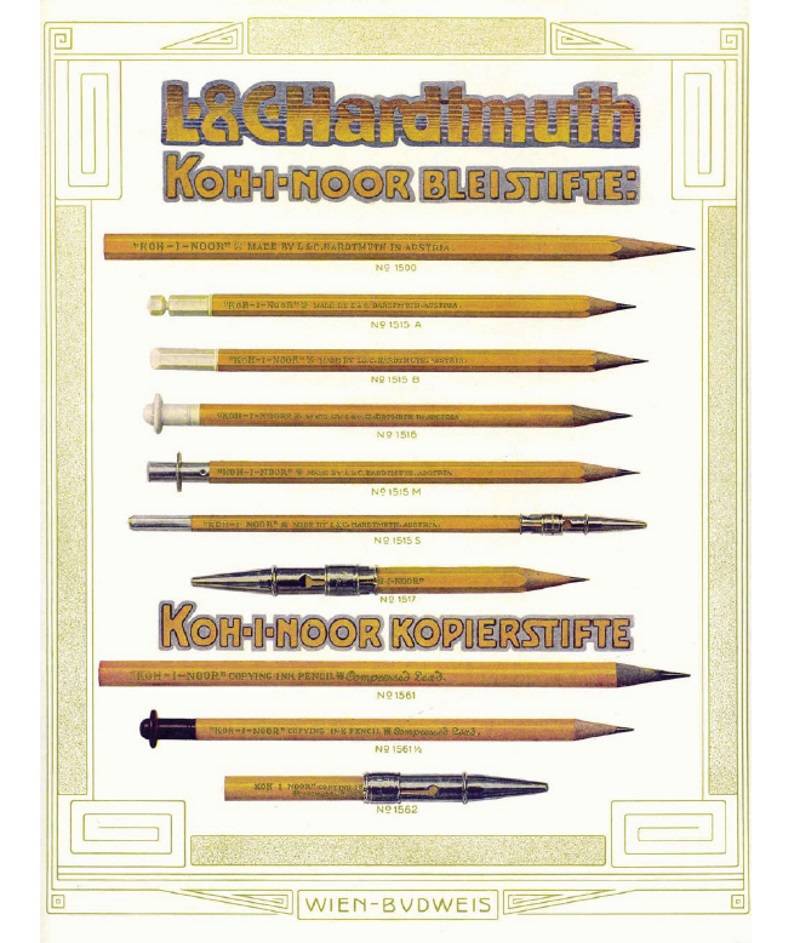 Koh-i-noor Hardtmuth, tužky. Stránka z firemního katalogu určeného pro zahraniční trh (kolem roku 1900)