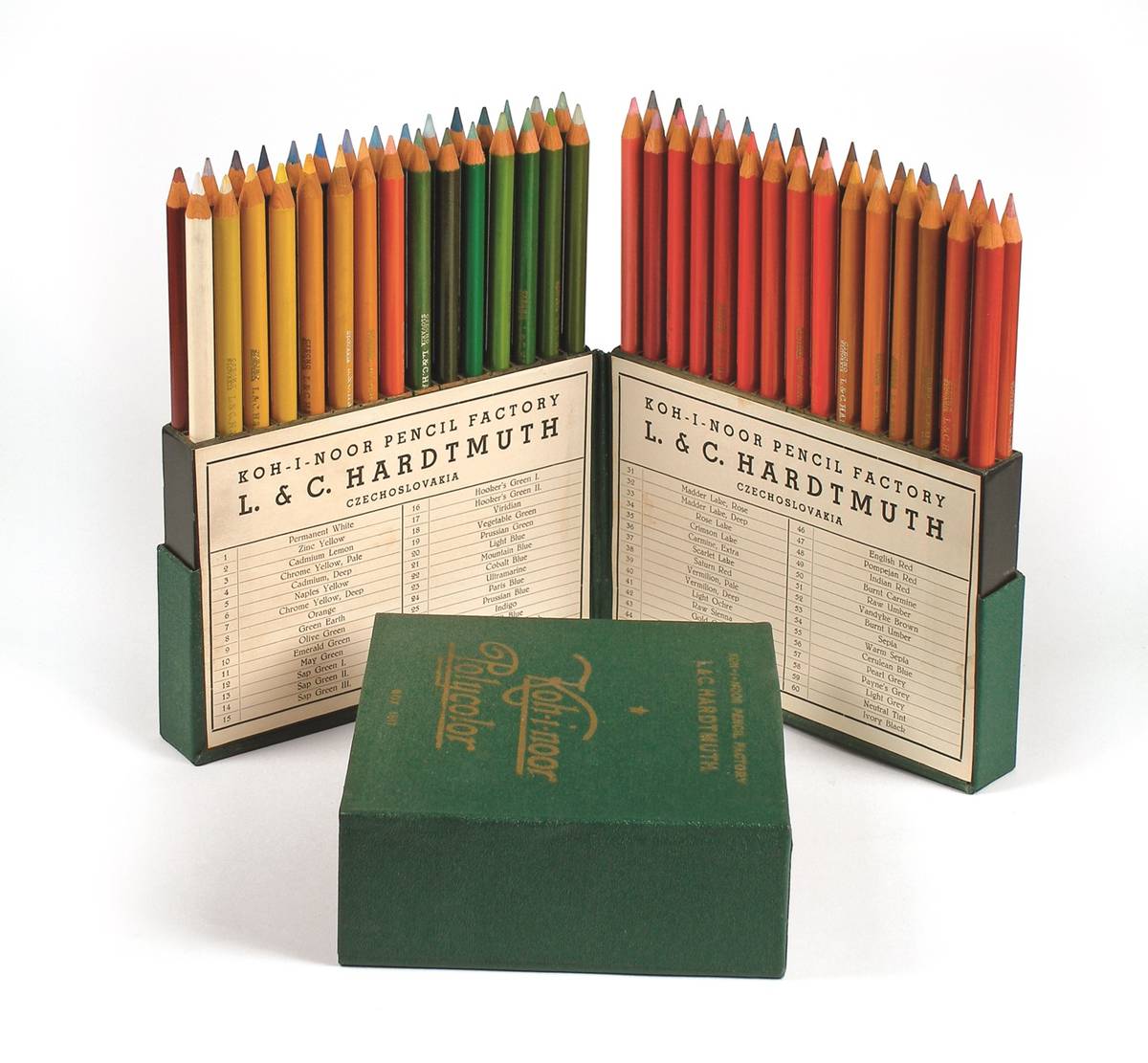 Koh-i-noor Hardtmuth, tužky. Ukázka sortimentu pastelek z 30. let 20. století.