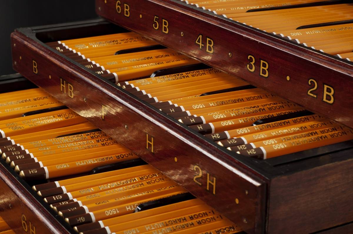 Koh-i-noor Hardtmuth, tužky. Tužka legendární řady 1500, dole na snímku je její původní provedení a nahoře současné. Příliš se za tu dobu nezměnila.