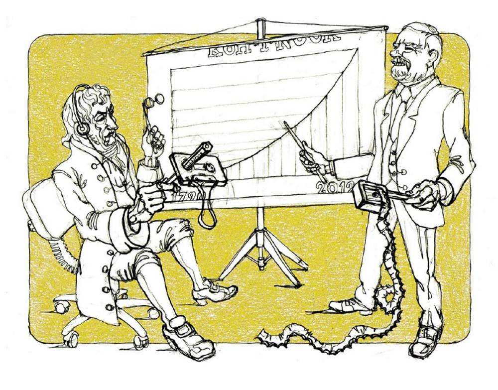 Koh-i-noor, tužky. Vítězné kresby z celostátní soutěže Kreslíme jedním tahem, která proběhla v roce 2012 na ruském trhu během celoroční marketingové kampaně k výročí 222 let od založení české firmy 92. Karikatura zachycující zakladatele firmy Josepha Hardtmutha se současným generálním ředitelem Vlastislavem Břízou