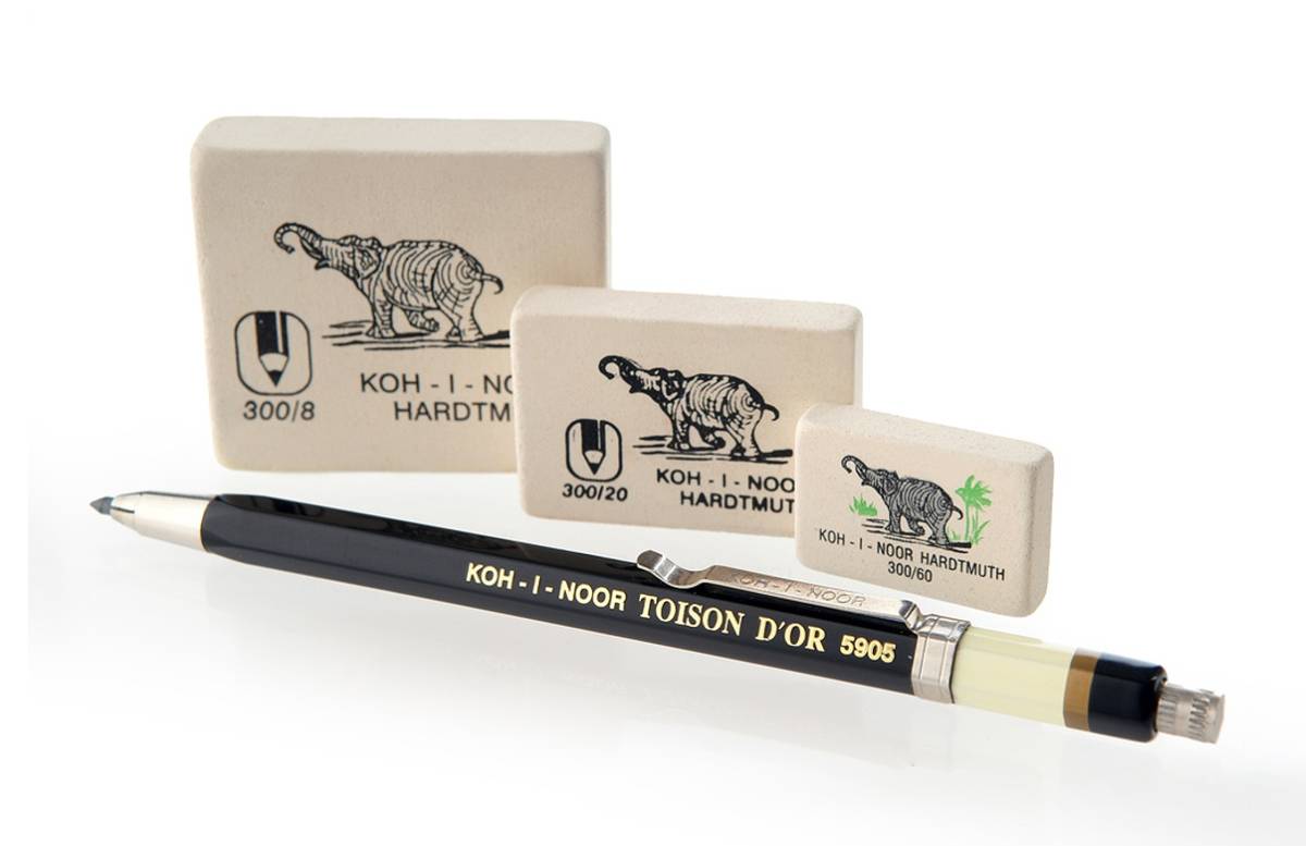 Koh-i-noor, tužky. Dnes již legendární slon na stíracích pryžích Koh-i-noor Hardtmuth je pátou nejstarší obrazovou známkou na světě. Verzatilka TOISON D’OR 5905 s klipem.
