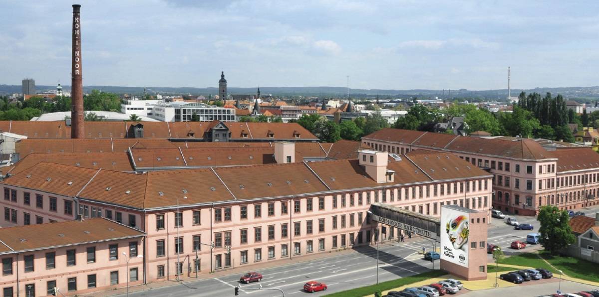 Koh-i-noor, tužky. Pohled na areál Koh-i-noor z roku 2015
