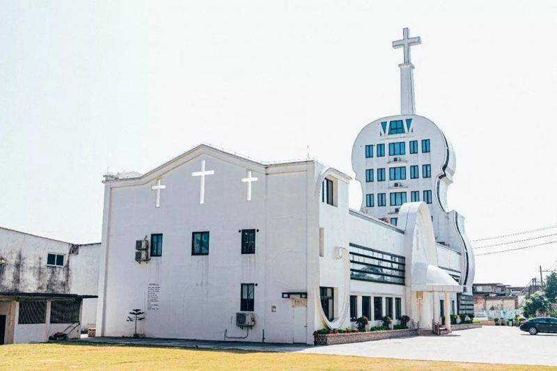 Kostel ve tvaru houslí stojí ve vesnici poblíž města Fo-šan. Tamní obyvatele irituje tím, že je, jak sami říkají, "příliš obrazný".