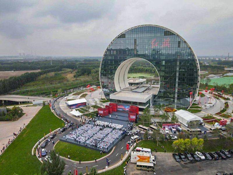 Mezinárodní automobilový park v Čchang-čchunu vypadá jako kolo od auta, ve skutečnosti má ale připomínat jádro znaku jin a jang (dvě navzájem opačné a doplňující se síly).