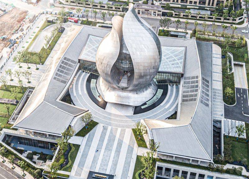 Muzeum vědy a techniky ve Wu-chanu vzniklo s myšlenkou, že budova bude připomínat sémě zabalené v zelených výhoncích.