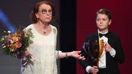 Jednu z cen za celoživotní mistrovství v kategorii činohra převzal herec Jan Kačer. Vlevo je jeho dcera Adéla Kačerová.