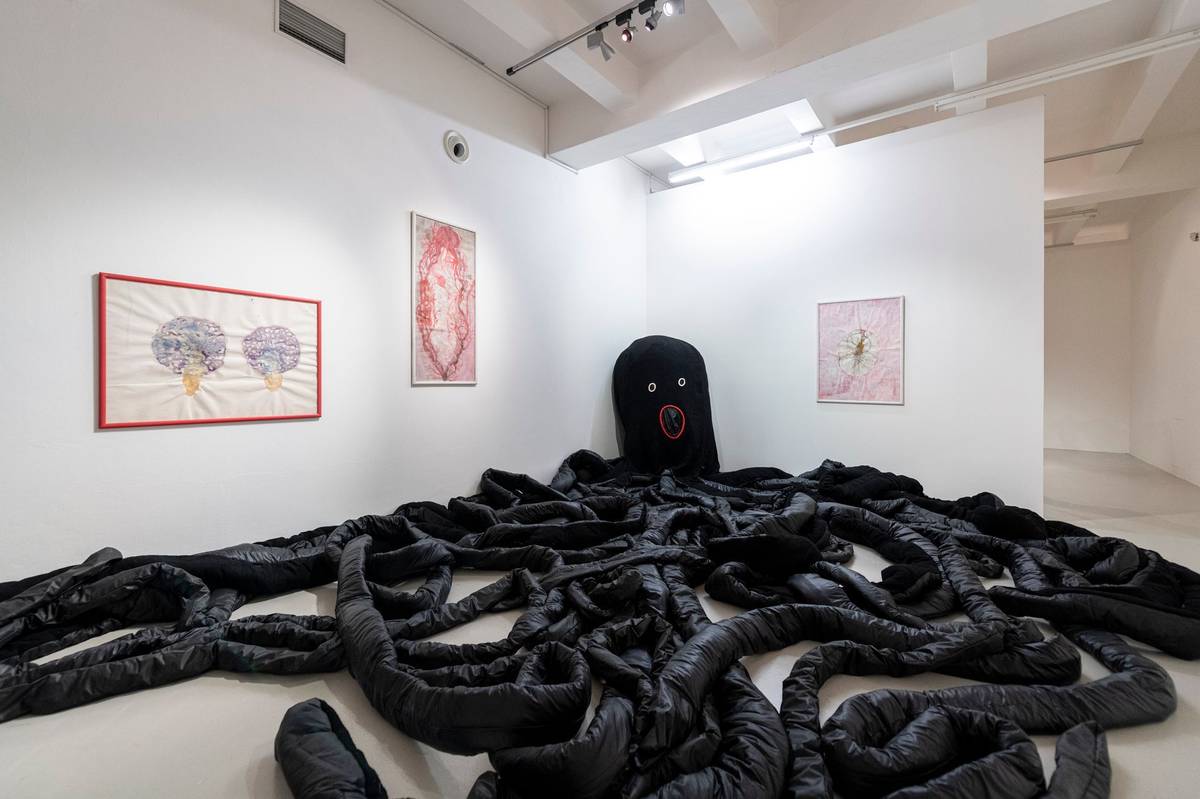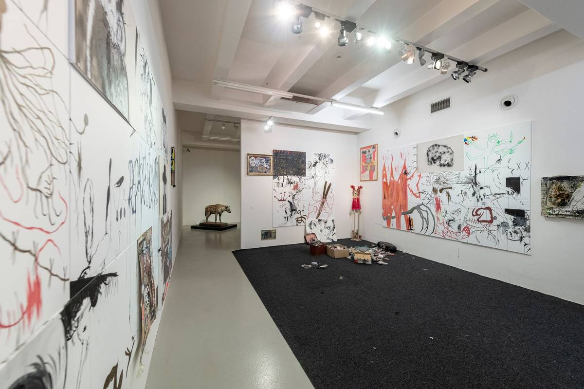 Společná instalace Josefa Bolfa a Jakuba Hoška připomíná atmosféru Skreplova ateliéru.