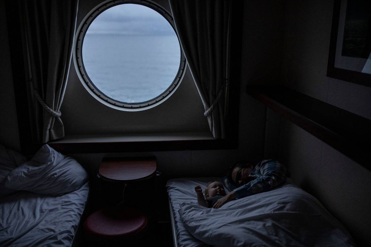 Fotograf Milan Bureš vyrazil s manželkou Emou a sedmiměsíčním synem Ottem na sever Norska. Cestou zachytil kouzelné scenerie i rodinnou intimitu. (Na snímku: Na trajektu mezi německým městem Sassnitz a švédským Ystad. Na sever Norska jsme se vydali nejrychlejší cestou přes Švédsko.)
