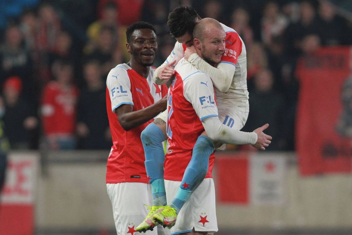 Slávisté vyhráli k radosti zaplněného Edenu duel, v němž hosté dohrávali bez tří vyloučených, v poměru 2:0.