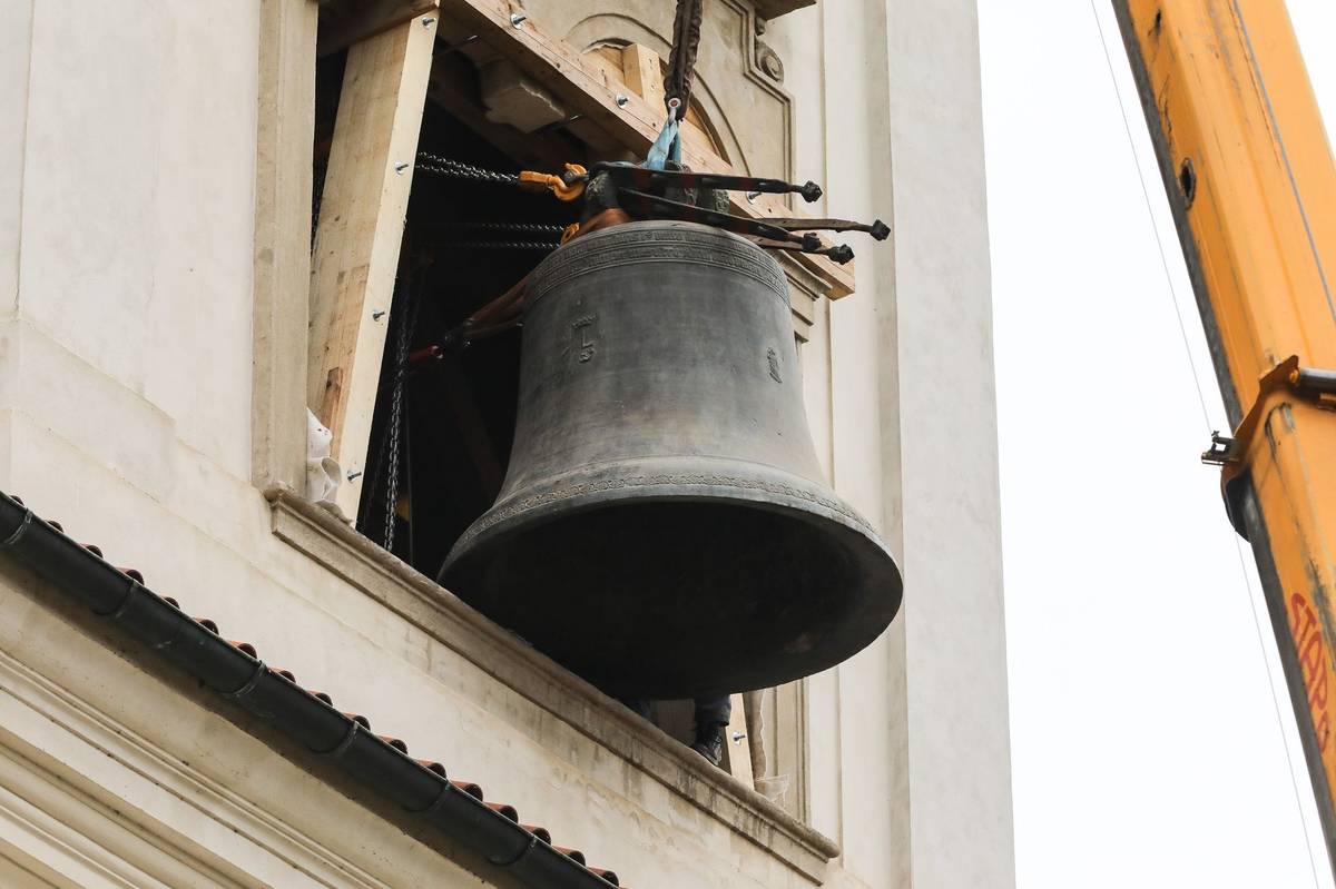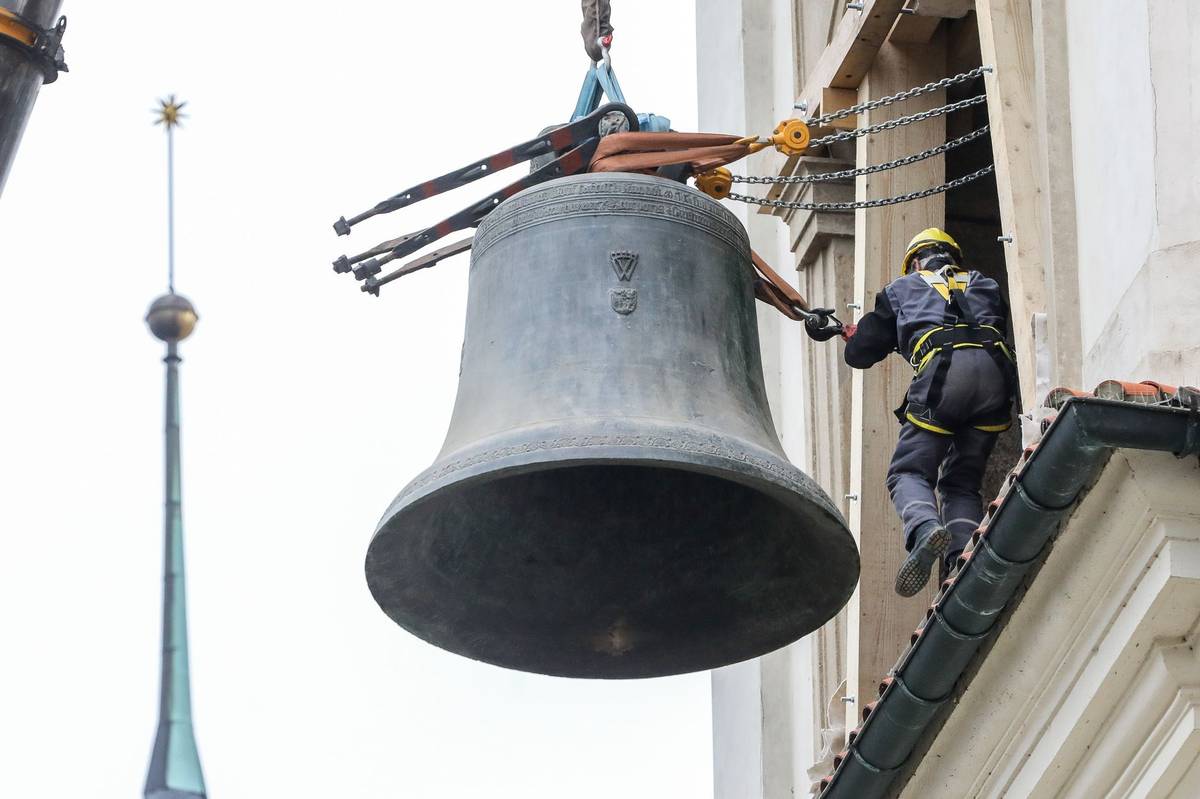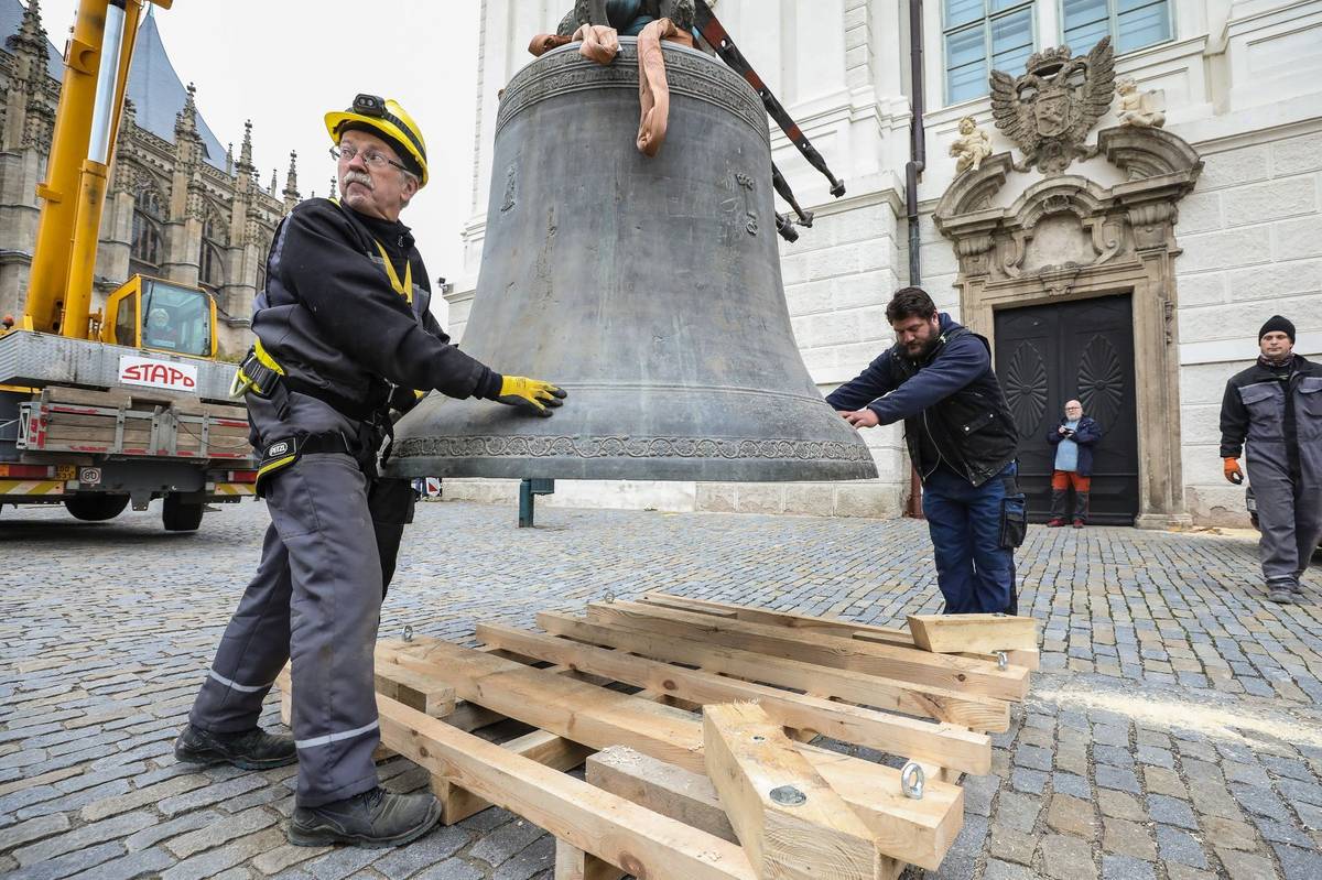 Zvony mají metr a půl, respektive metr osmdesát v průměru, šlo proto o centimetry. "Tehdejší stavaři nám příliš nevycházeli vstříc, nikdo totiž nečekal, že se zvony budou za pět set let sundávat," komentoval to později Manoušek.