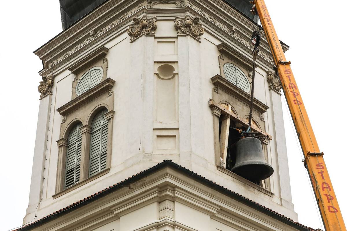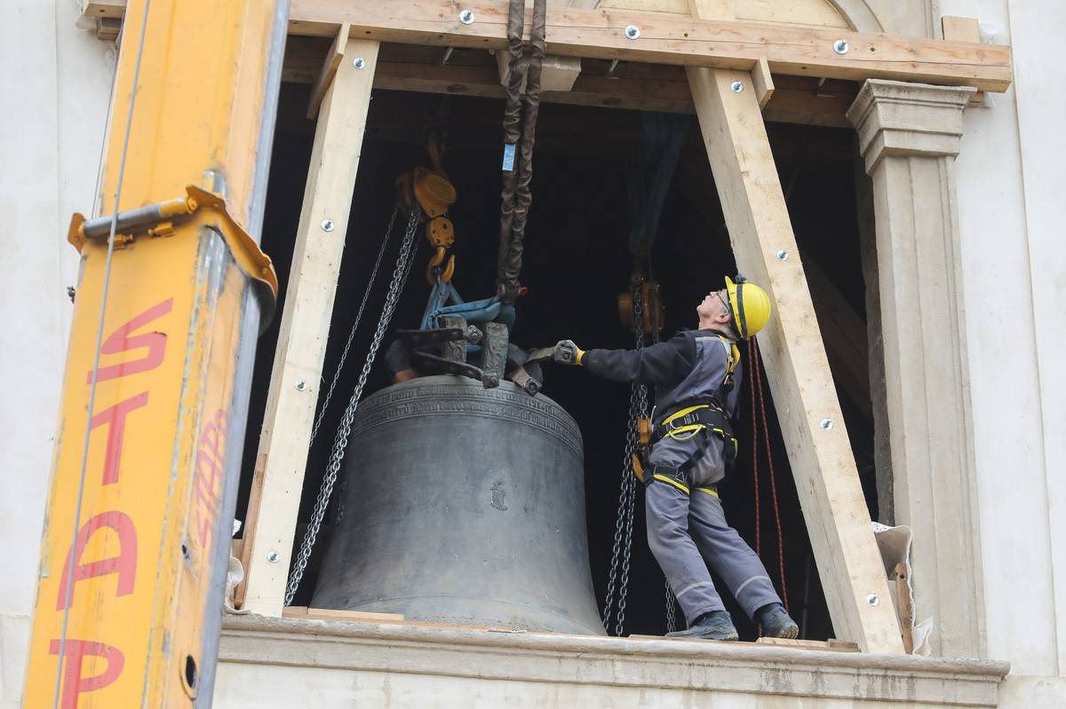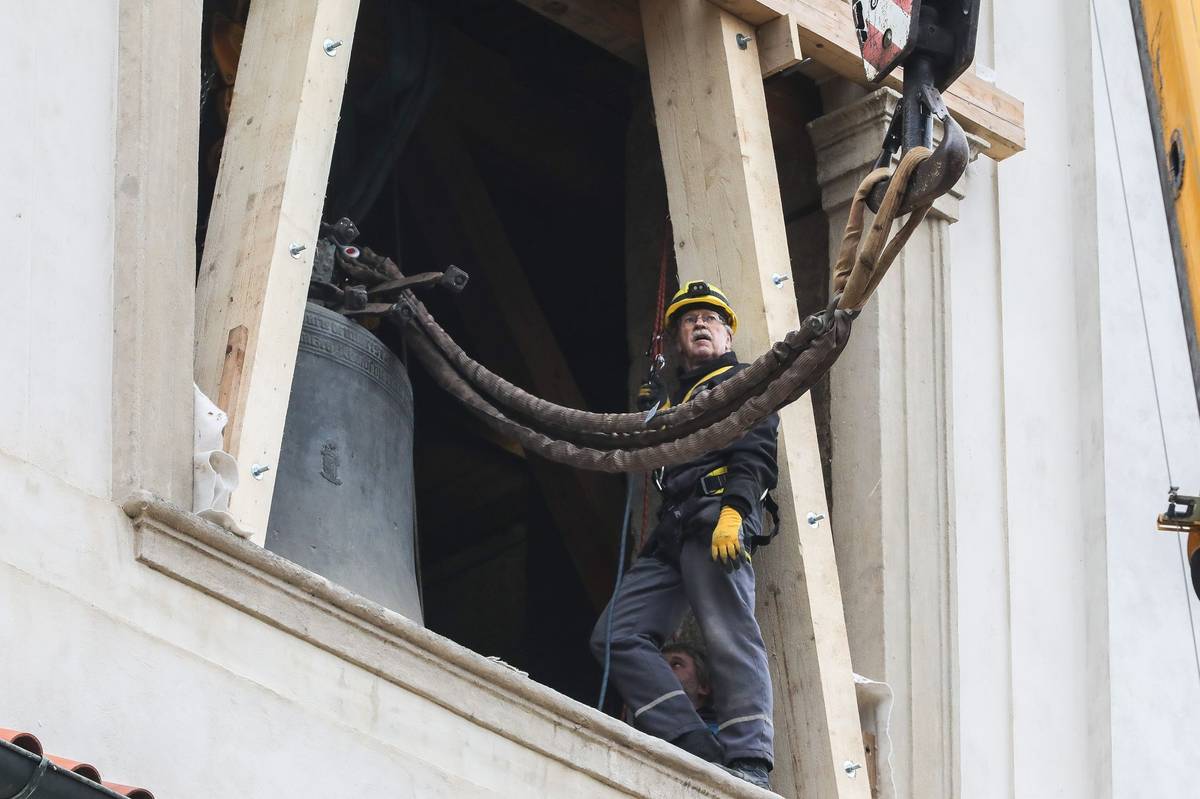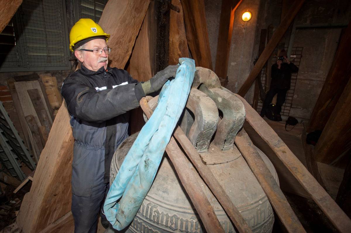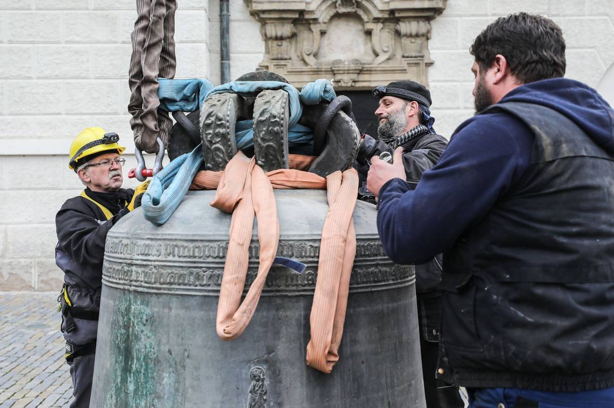 Už několik dní předtím strávili zvonaři řadu hodin ve věži demontáží zvonů a přípravě na transport. Oba zvony kvůli prasklinám už tři roky mlčí.