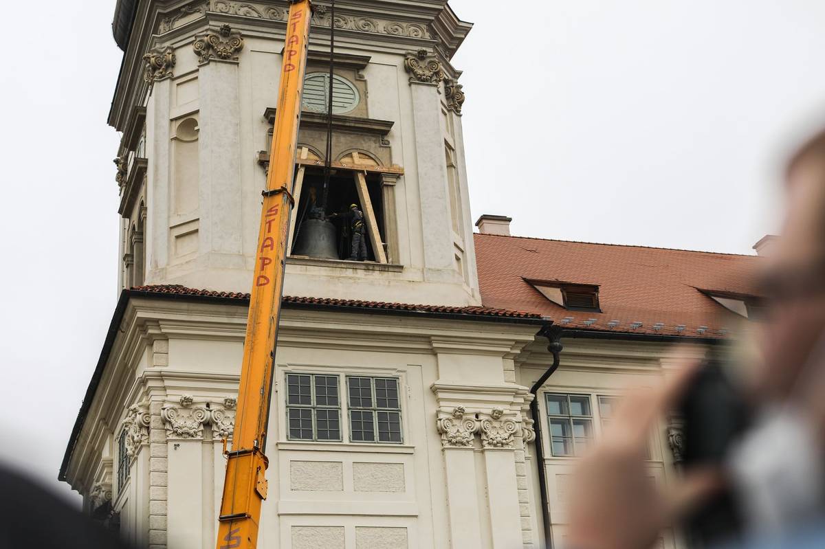 První šel na řadu menší zvon Michal o váze 2,4 tuny z roku 1493. Po něm šel z okna i o sedmnáct let mladší a tunu a půl těžší Ludvík.