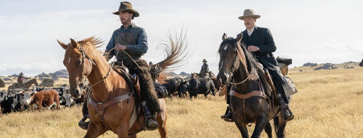 Vlevo je Benedict Cumberbatch jako Phil.
