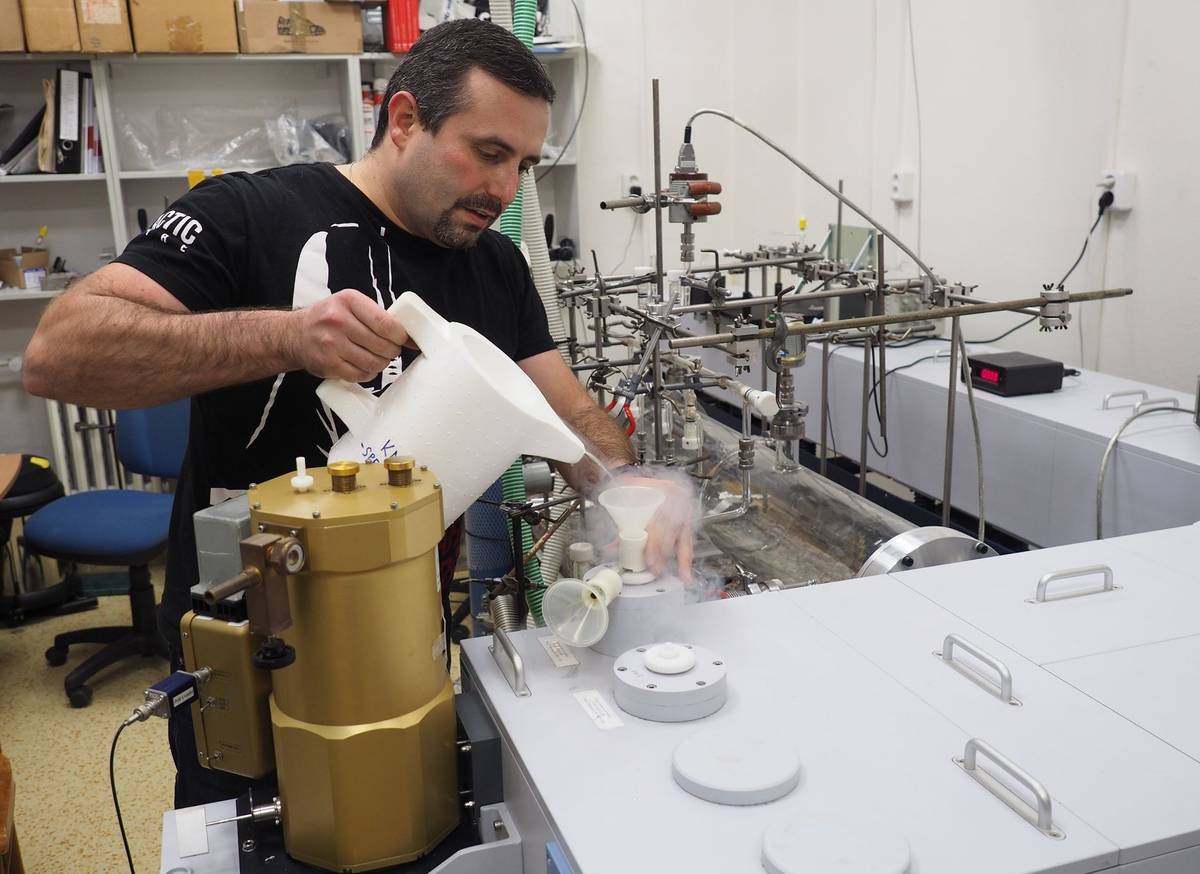 Zdejší procesy se chladí velkým množstvím kapalného dusíku a je potřeba pracovat ve vakuu. "Proto přístroj, ač zkoumá materiál milionkrát menší než lidský vlas, je takto obrovský," vysvětluje Valtera.