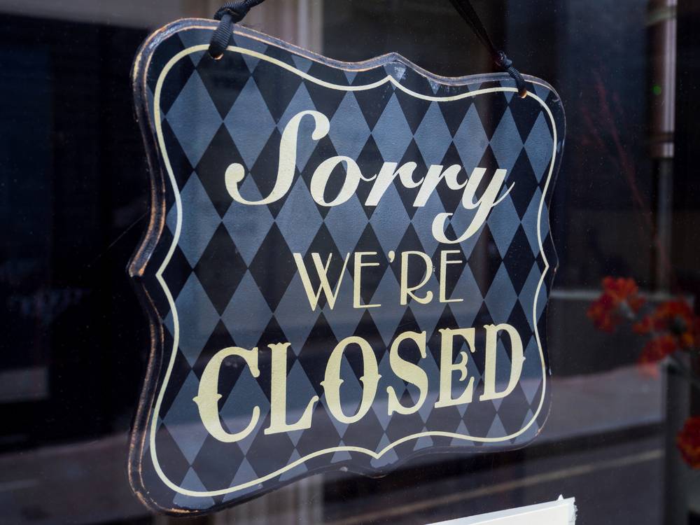 Promiňte, máme zavřeno. Znamení na další ze zavřených restaurací ve východním Londýně, 9. května 2020.
