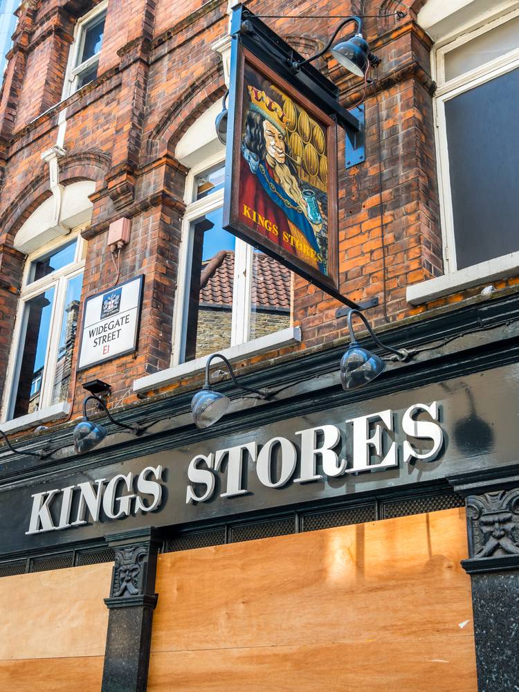Hospoda Kings Stores. Tradiční hospoda s dřevěnými podlahami, kde se pouští živá sportovní utkání a v horním podlaží si můžete posedět u jídla, je netradičně zavřená. Snímek ze 7. května 2020.