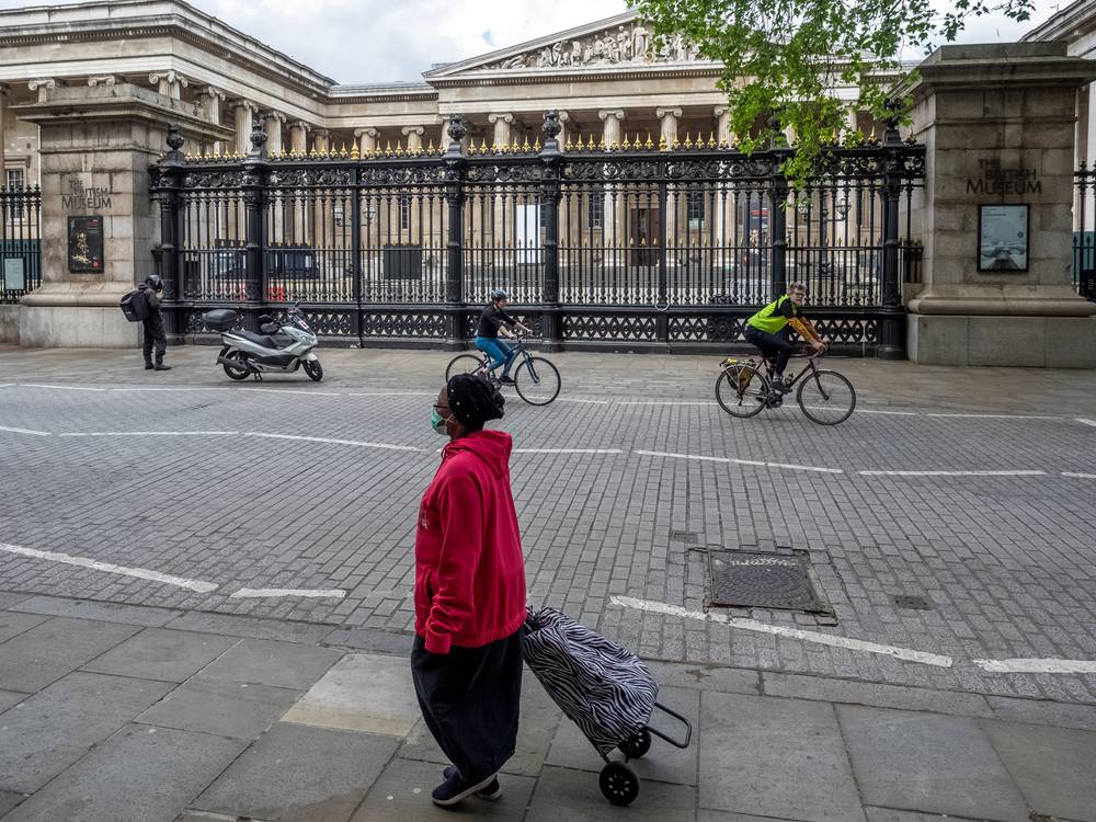 Vstup do Britského muzea, foceno 4. května 2020 v půl jedné odpoledne.