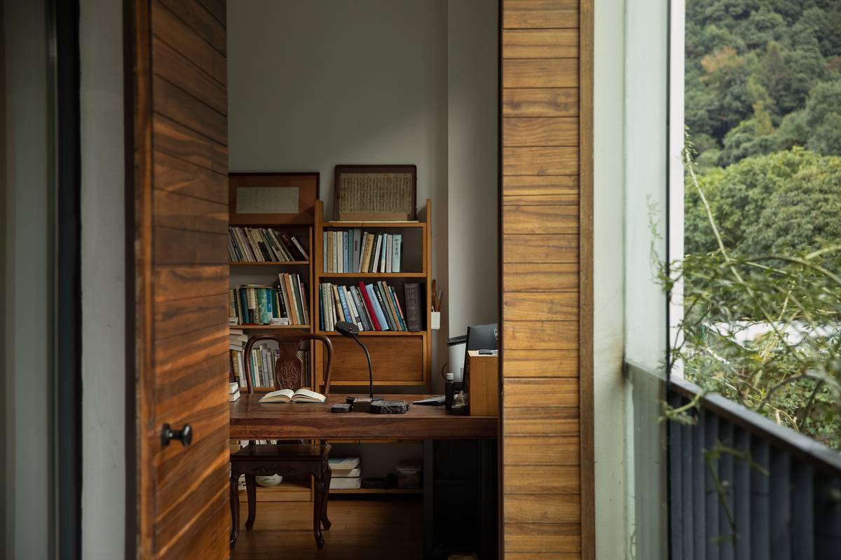 Pracovna s knihovnou dávají nahlédnout osobnost majitele a odhalují i důvod, proč architekt projekt nazval Učencova vila.