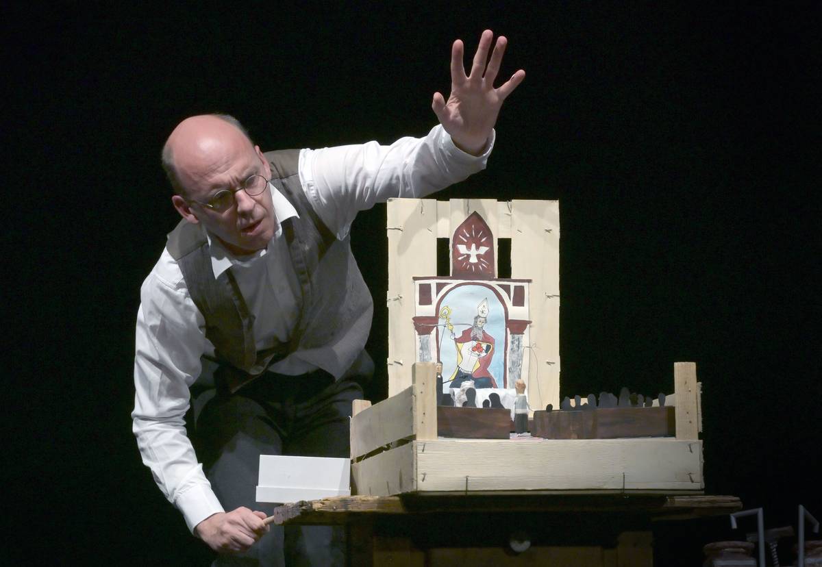 V inscenaci Maryša Vávrová loutkoherec Tomáš Hájek nahlíží na slavné drama bratří Mrštíků optikou mlynáře Vávry.