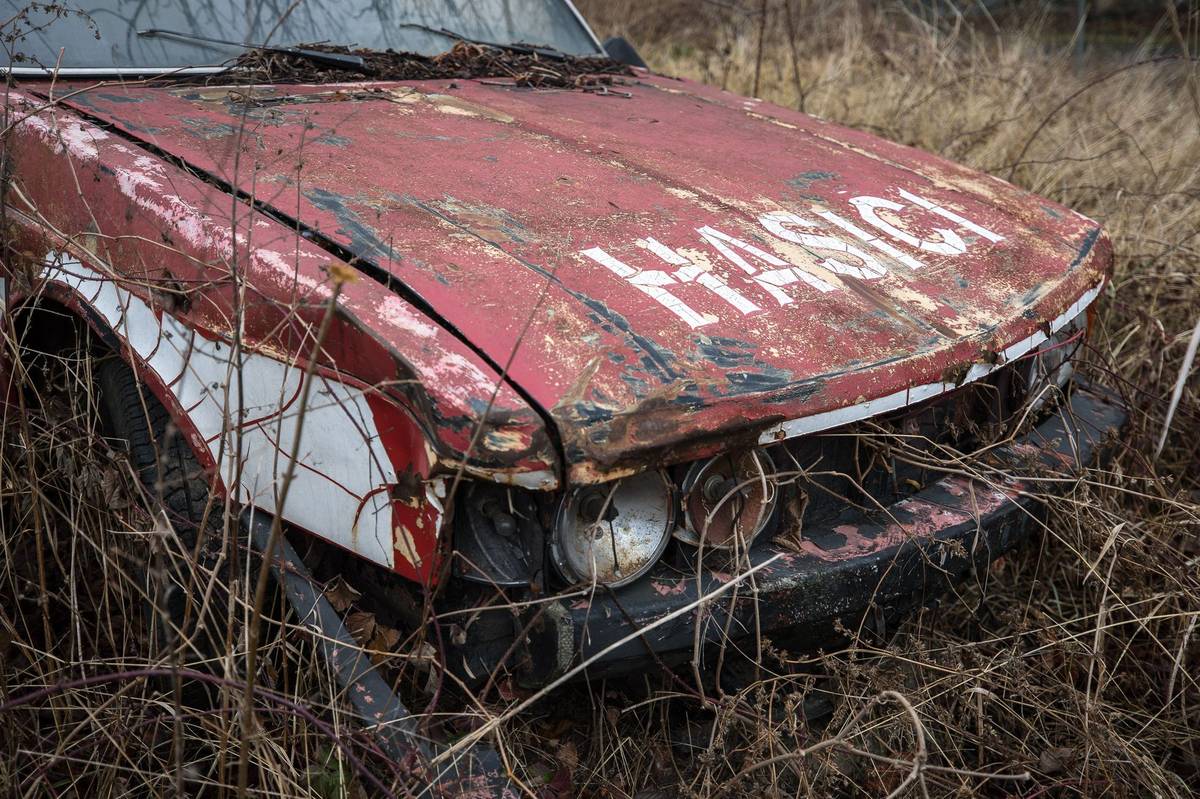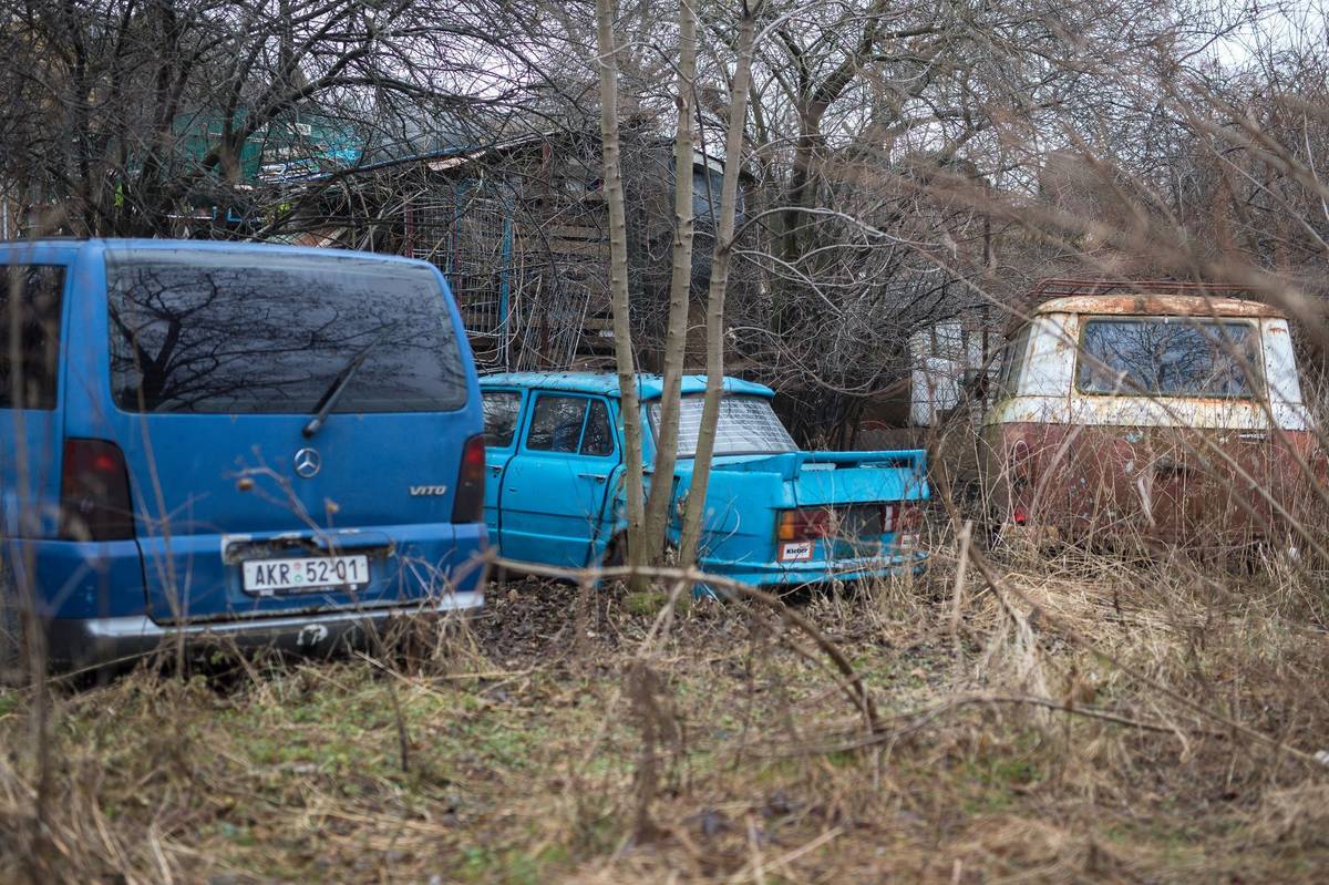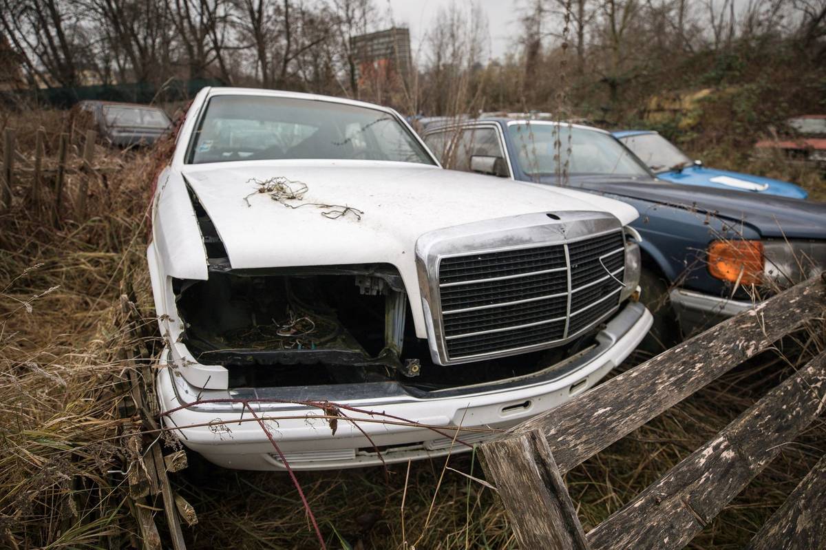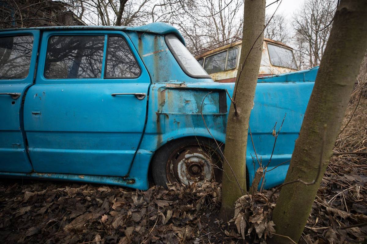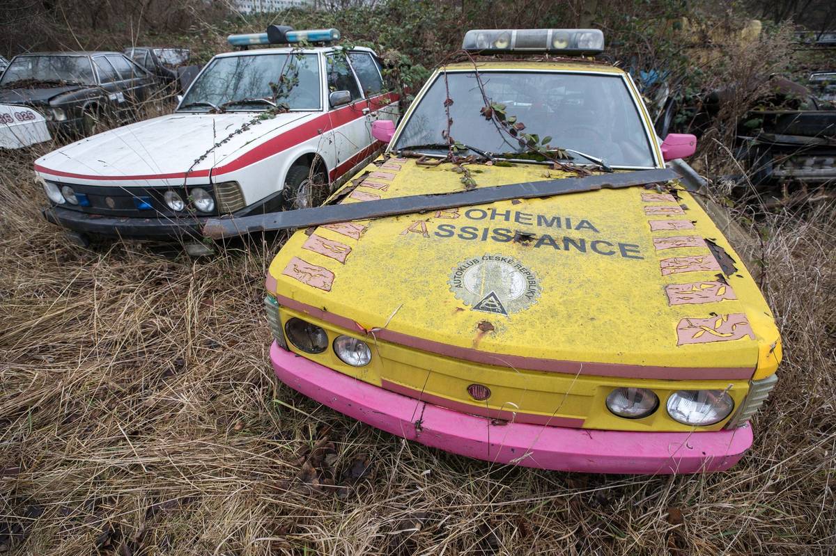 Na ploše jsou desítky odložených aut v různém stadiu rozkladu.