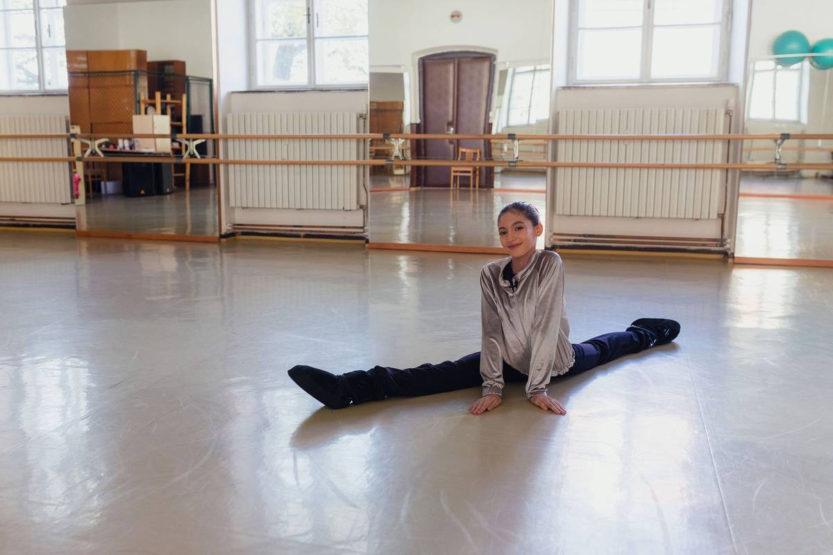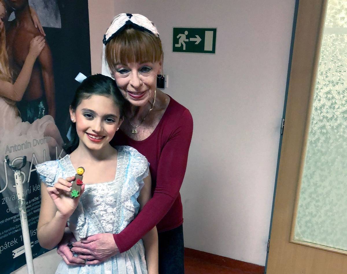 Před svou premiérou v roli Klárky v baletu Louskáček v Moravském divadle Olomouc (na fotografii s pedagožkou Baletního studia, bývalou primabalerinou Janou Hanákovou), prosinec 2018.