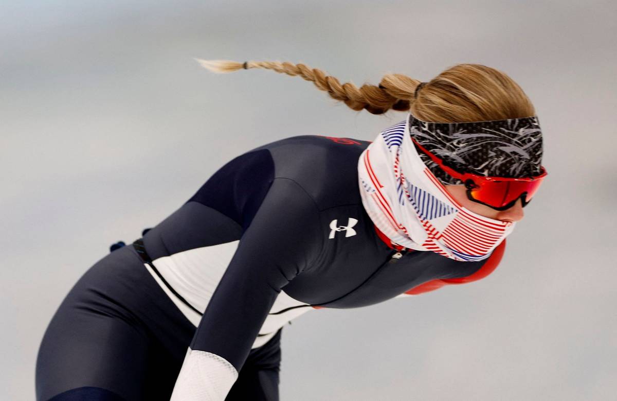 Rychlobruslařka Nikola Zdráhalová si ovázala tvář šátkem.