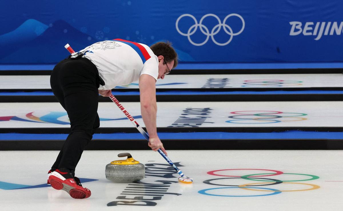 Tomáš Paul v zápase smíšených dvojic v curlingu Česko - Norsko na ZOH 2022